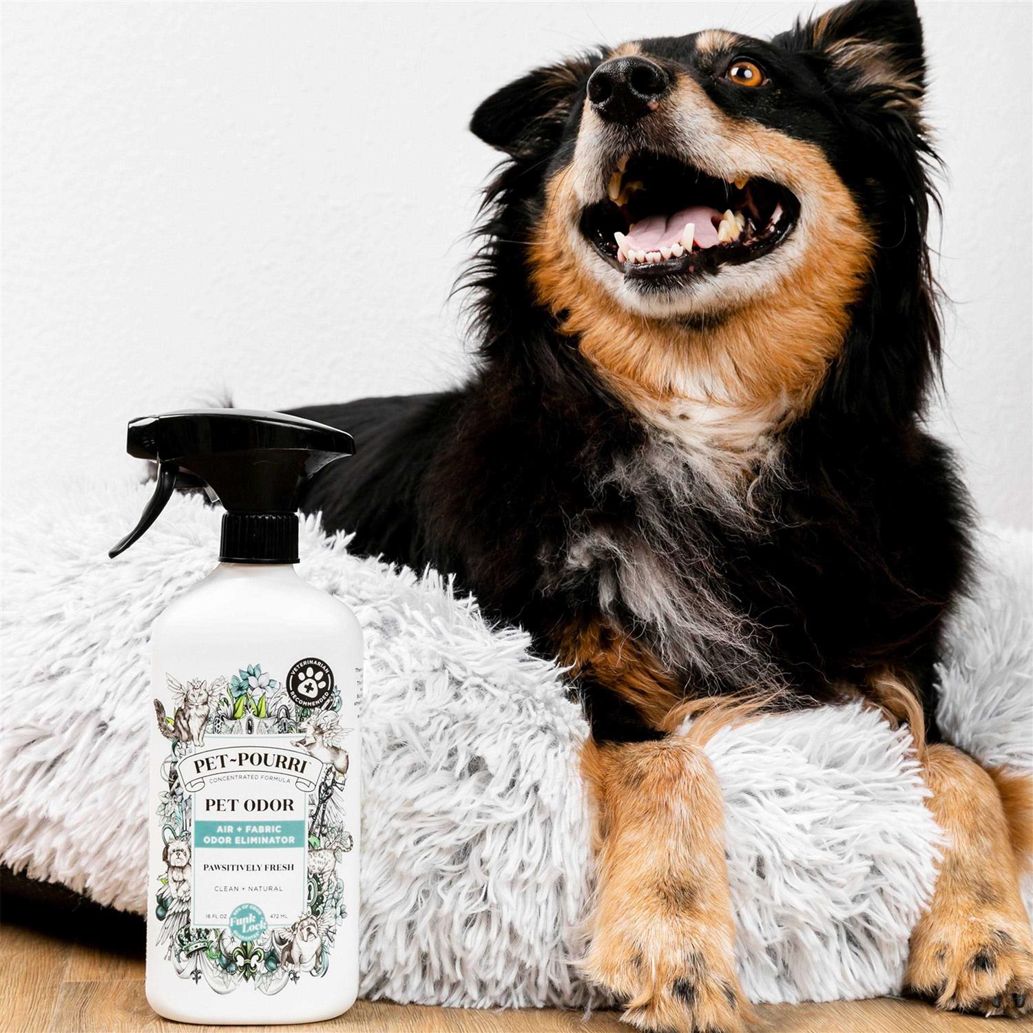 Pet odor can be ruff! not anymore! Pet~Pourri air and fabric spray eliminates 99% of pet odor across your home (including urine). Proprietary Funk Lock Technology neutralizes odor molecules so your nose cant register themfancy.