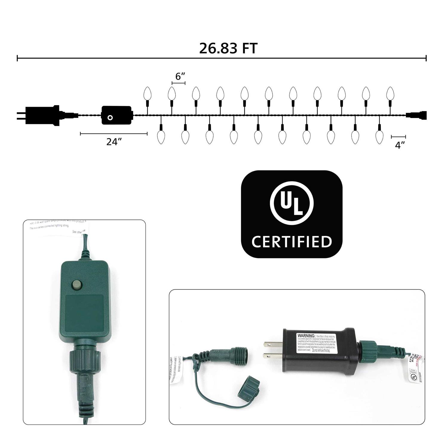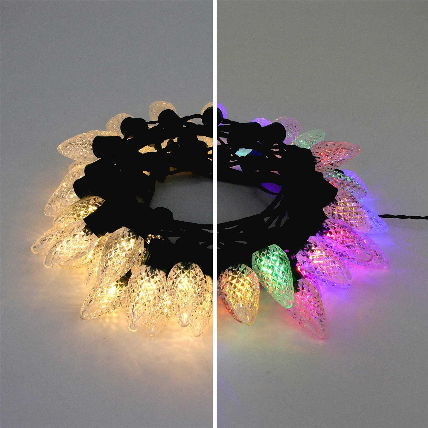 Philips 50 LED 8 Function Bicolor Faceted C9 Christmas Lights on Green Wire – UL Listed for Indoor/Outdoor Use – 26.83′ Total Length with 6″ Bulb