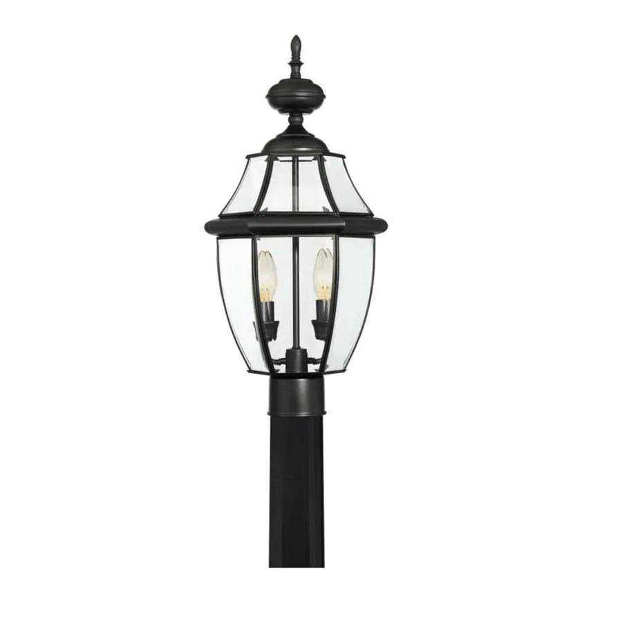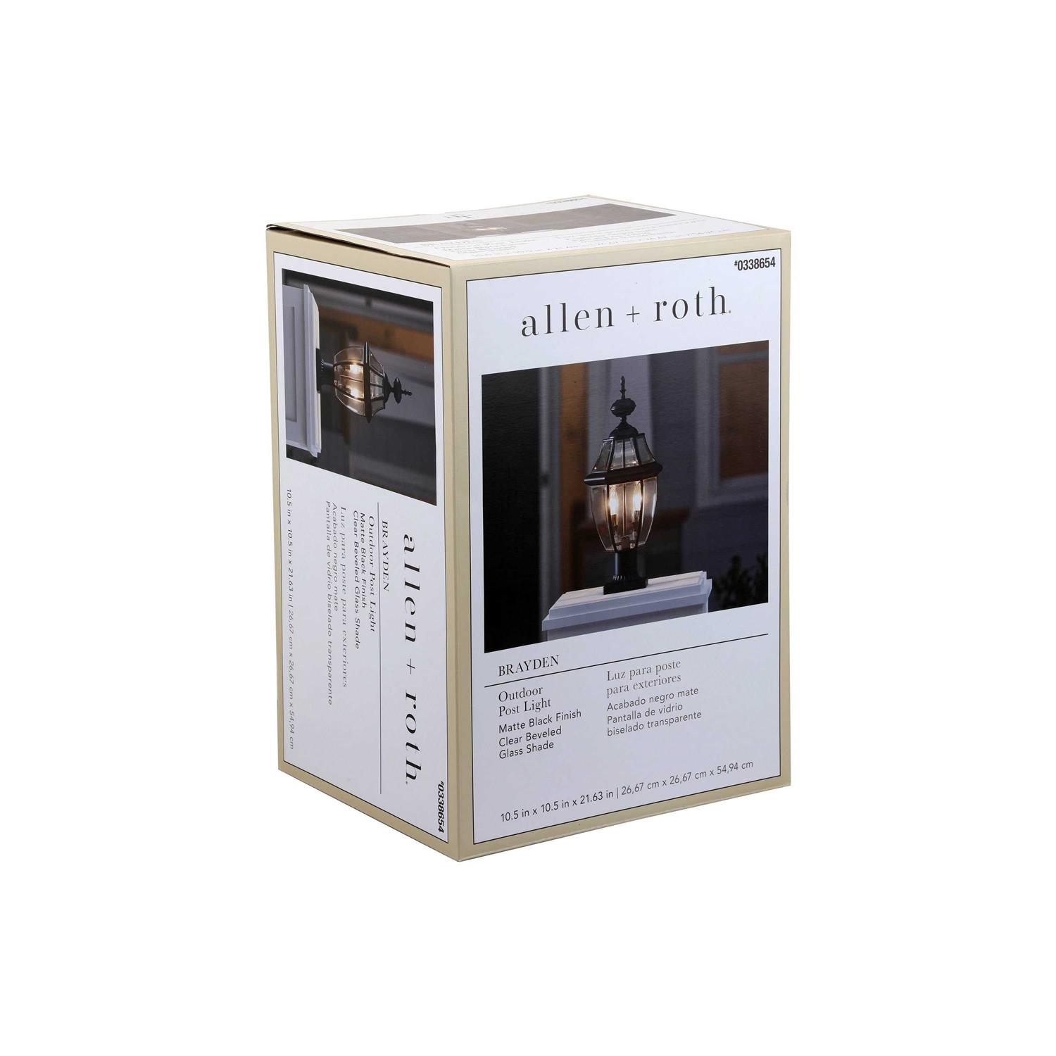Features clear beveled glass and a black finish. Uses two 60 watt candelabra base bulbs not included. The terrific design and clear glass of the Brayden collection gives the outside of your home a rich elegance. The right lighting creates the perfect curb appeal. Complete your outdoor lighting with the Brayden collection – see related items. SGS listed for wet location usage. Post mount is not included.