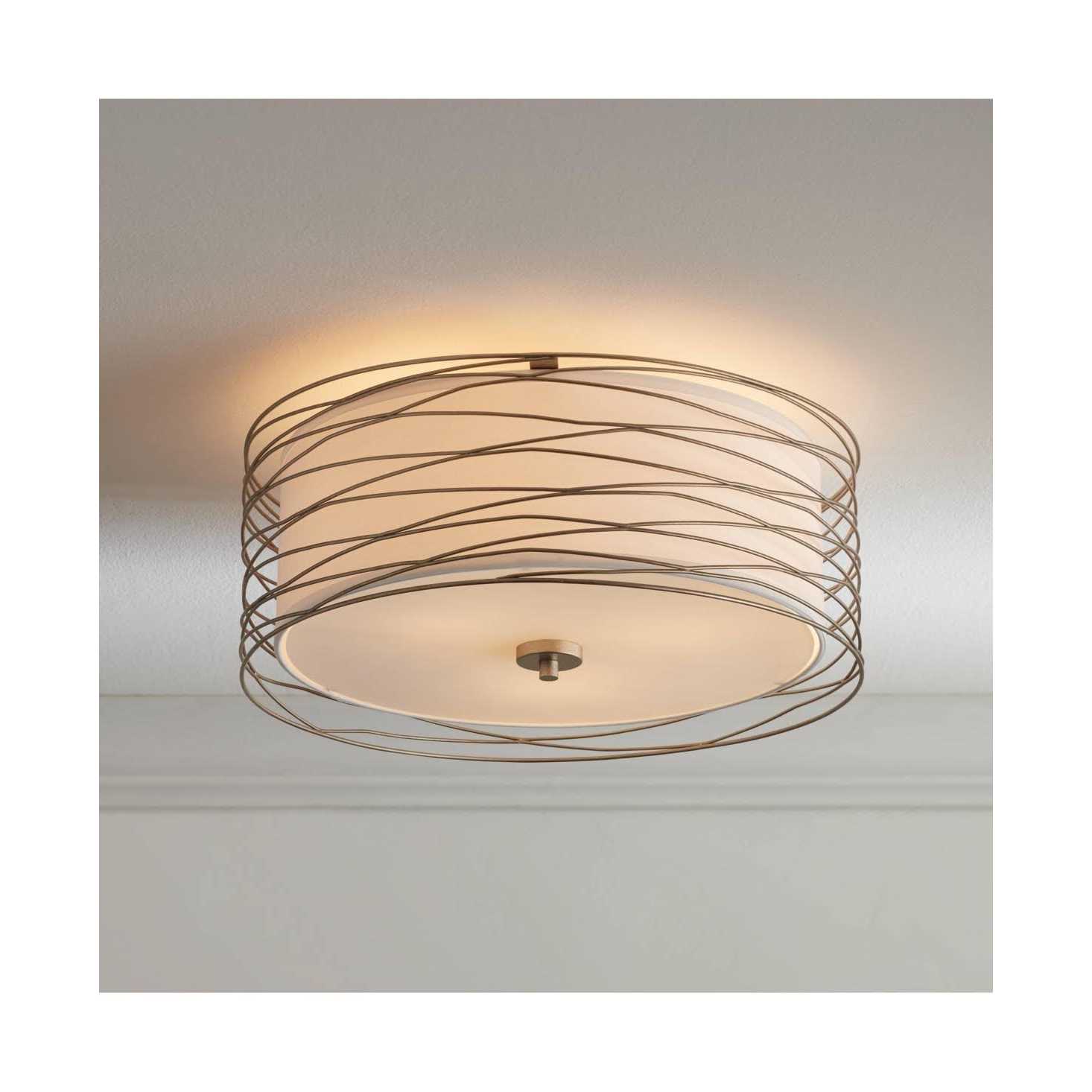 A spun silver finish metal frame winds itself like rivulets around the white inner shade of this flushmount ceiling light. The transitional style design is sure to add interest and contemporary appeal to your living space. Featuring a bottom glass diffuser this ceiling light will make a great addition to family rooms, bedrooms, and more.
