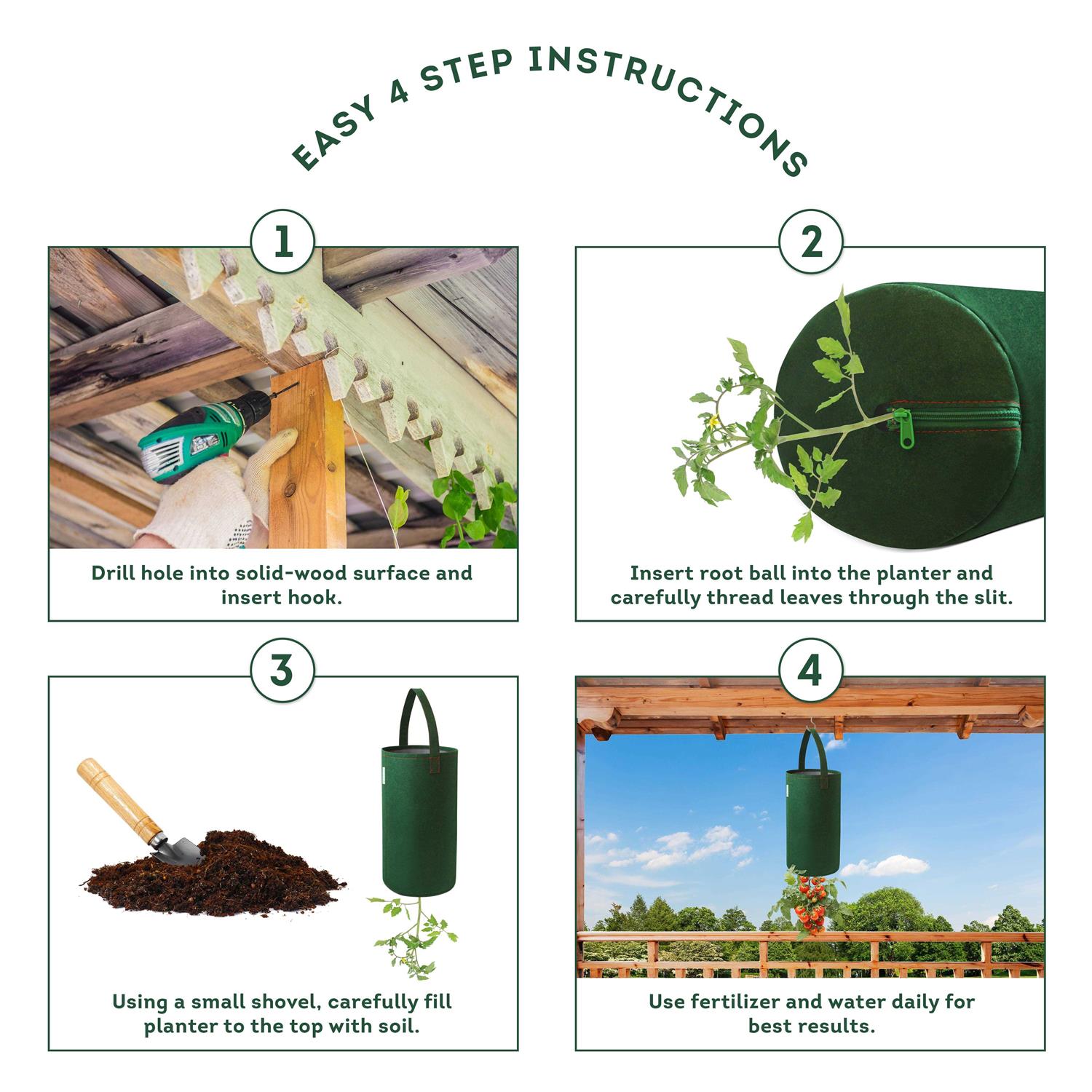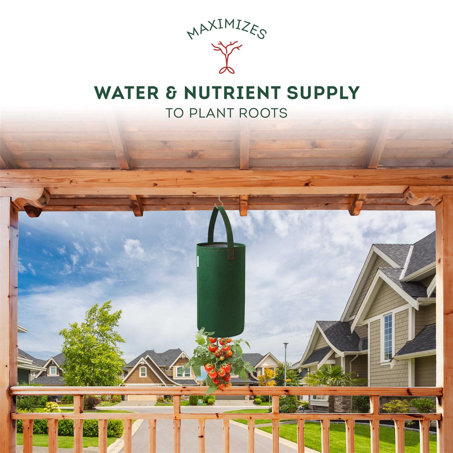 Harvest at chest level, with no need to tie up vines. Less dirt and bugs compared to conventional planting and absolutely no weeds! Upside Down Design: Saves space and utilizes gravity to maximizes water and nutrient supply to roots.The Fabric material: Naturally air prunes the roots to promote healthy root growth. Allows maximum oxygen to roots.
