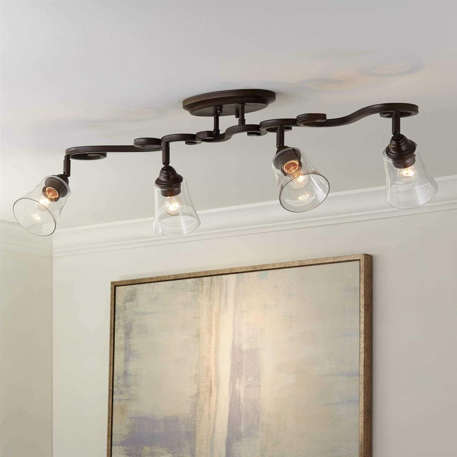 Pro Track Myrna 4-Head Ceiling or Wall Track Light Fixture Kit Directional Bronze Finish Glass Modern Scroll Kitchen 43 1/2 inch Wide