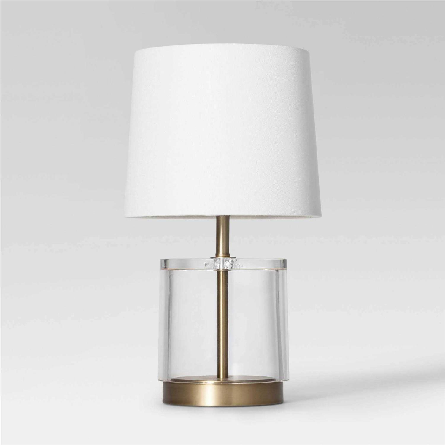 Light up any space in your home in sleek style with the Table Lamp from Project 62. This small standing lamp brings interesting contrast with the metal and clear base, while the simple white shade keeps things versatile enough to pair with any of your existing styles.