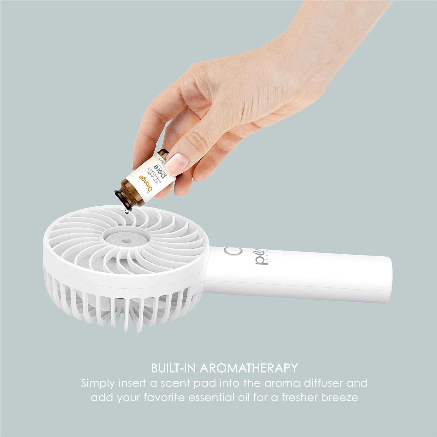PureBreeze Rechargeable Handheld Fan from Pure Enrichment is a portable 3-speed fan designed to generate powerful airflow in your personal space to keep you cool wherever you go. The slim design fits into any handbag or backpack so you can maximize your enjoyment at warm outdoor events. The whisper-quiet fan with 3 fan speeds won’t interrupt your conversations or activities. With a simple press of a singular button, choose between 3 fan speeds as this powerful personal fan produces a cool breeze with 7 blades. Use 100% pure essential oils* with the included aroma pads to enjoy the benefits of aromatherapy while naturally deodorizing the air. *Essential oils not included. Versatile and modern, place the fan in the convenient stand for hands-free use, or control the direction of your breeze by holding the ergonomic handle. At less than half a pound, this compact fan is made for transport and easily fits in any purse, briefcase, or luggage and includes a USB port for quick charging. While watching your favorite team, or cheering on your little tot, dont let the heat stop you from enjoying the game. Create a cool breeze in your personal space indoors while working, studying, cooking, or just relaxing with this whisper-quiet fan. Create your own personal wind tunnel while traveling on planes, trains, subways, and cars with this small but mighty fan.