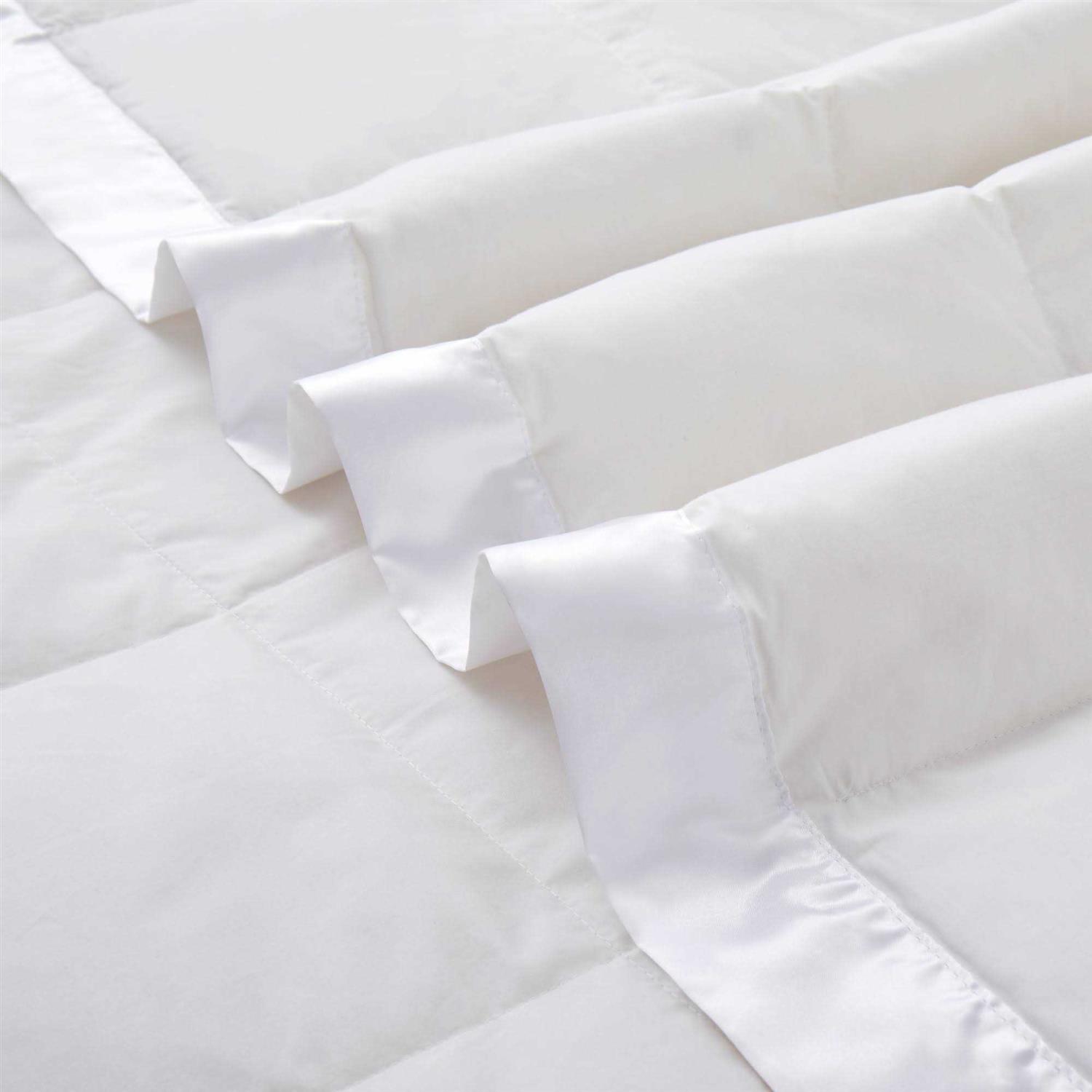 Box stitching prevent feathers from shifting. Beautiful satin weave shell makes the blanket more luxurious and noiseless