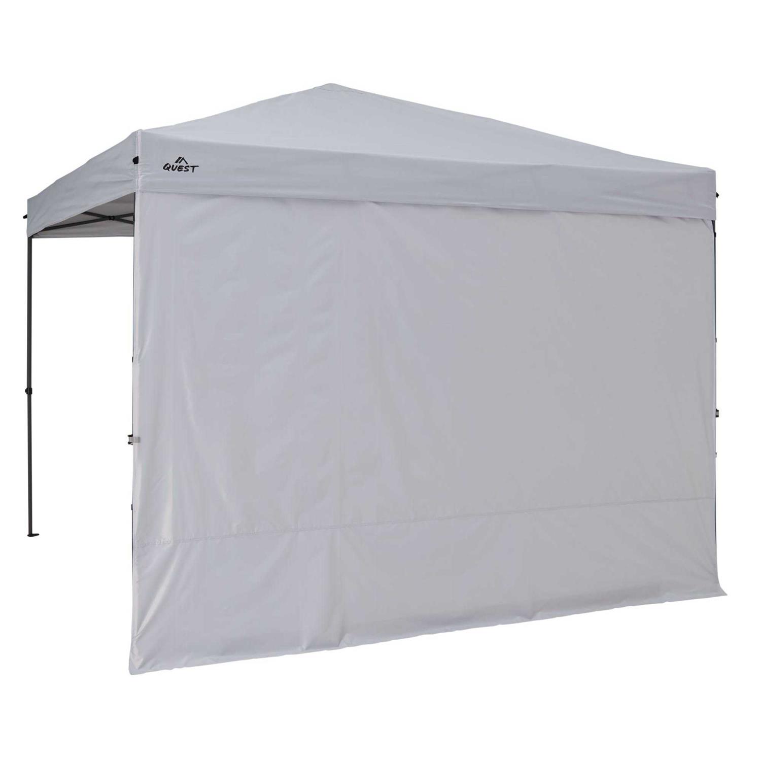 Features: Single solid side wall adds additional shade coverage to an existing canopy. Compatible with the Quest Q100 10[?] x10[?] Straight Leg Canopy (Canopy not included) Durable 150D silver-coated polyester provides additional protection against the elements. Water resistant and fire resistant. Includes a carry bag for convenient storage and transportation. Not recommended for use in high winds and bad weather. Side Wall Dimensions: 10[?] x 6[?] 5[?] Fits Canopy Frame: 10[?] x 10[?] Straight Leg Canopy.