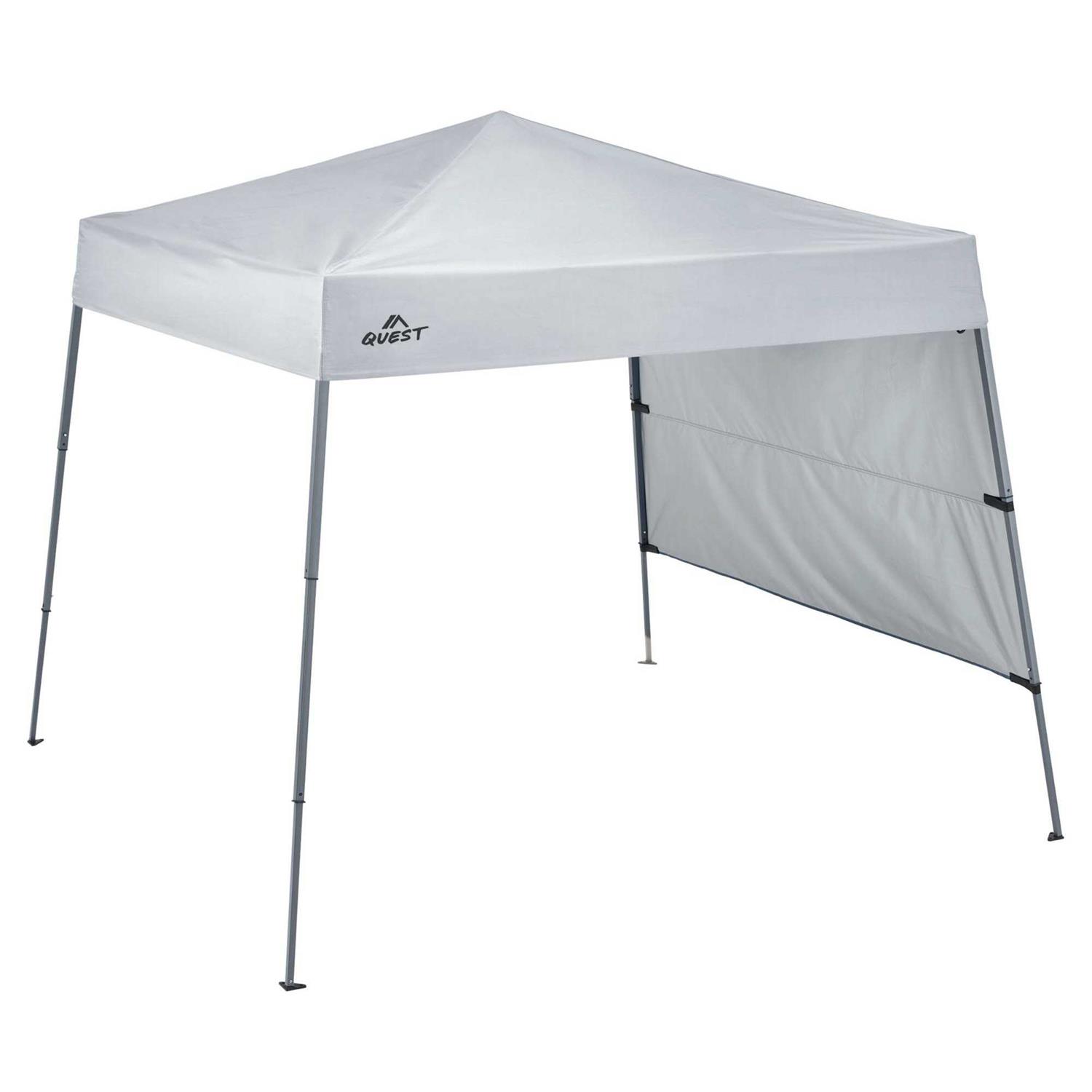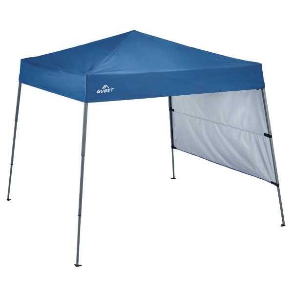 The Quest Q36 Backpack Canopy is extremely portable and lightweight. This 6? x 6? canopy is not only fast to assemble but includes a length shade wall for extra shelter from the sun. It folds down to a compact 28? size and fits inside the included backpack storage bag for total convenience whether traveling to sporting events, the beach, or the campground. FEATURES: Super lightweight Compact design folds to 28 inch Push button frame locking system allows a fast and easy set up Triple telescoping legs for different height adjustments Comes with length shade wall for privacy and additional protection from the shade Durable steel frame with angled legs 150D Polyester fabric top with aluminum backing Water-resistant, fire-retardant, and UV protection Zippered storage bag with backpack straps for easy carrying Includes 4 guy lines and 8 ground stakes for security SPECS: Top Dimensions: 6′ x 6′ Base Dimensions: 7′ x 7′ Shade Square Footage: 36 sq. ft. Walk-In Height: 4′ 2 inch Peak Height: 5′ 8 inch Weight: 17.6 lbs. Frame Thickness: .5 mm Storage Bag Fabric: 600D