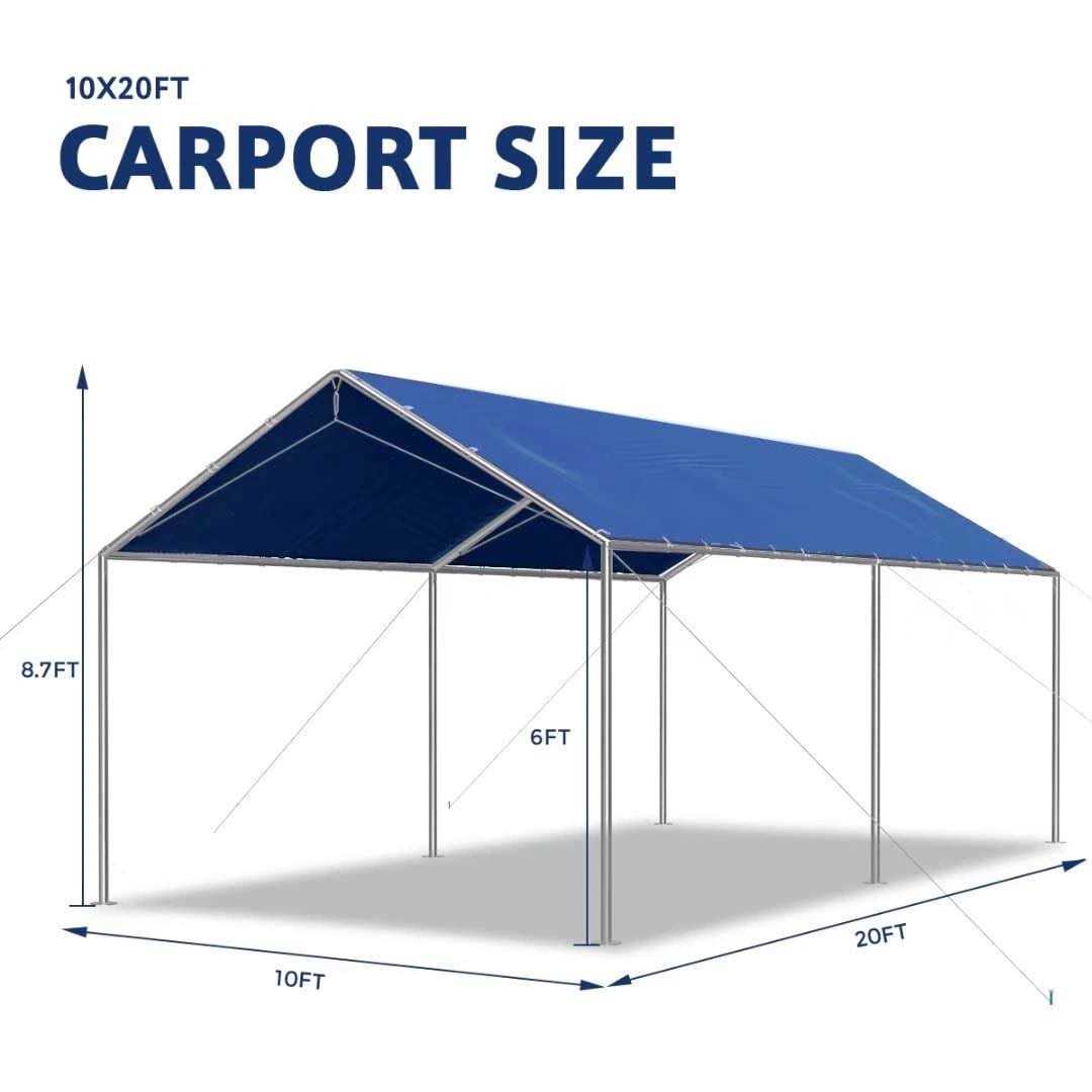 Quictent 10x20ft Heavy Duty Carport with Steel Cables-Blue, Size: 10′ x ’20’