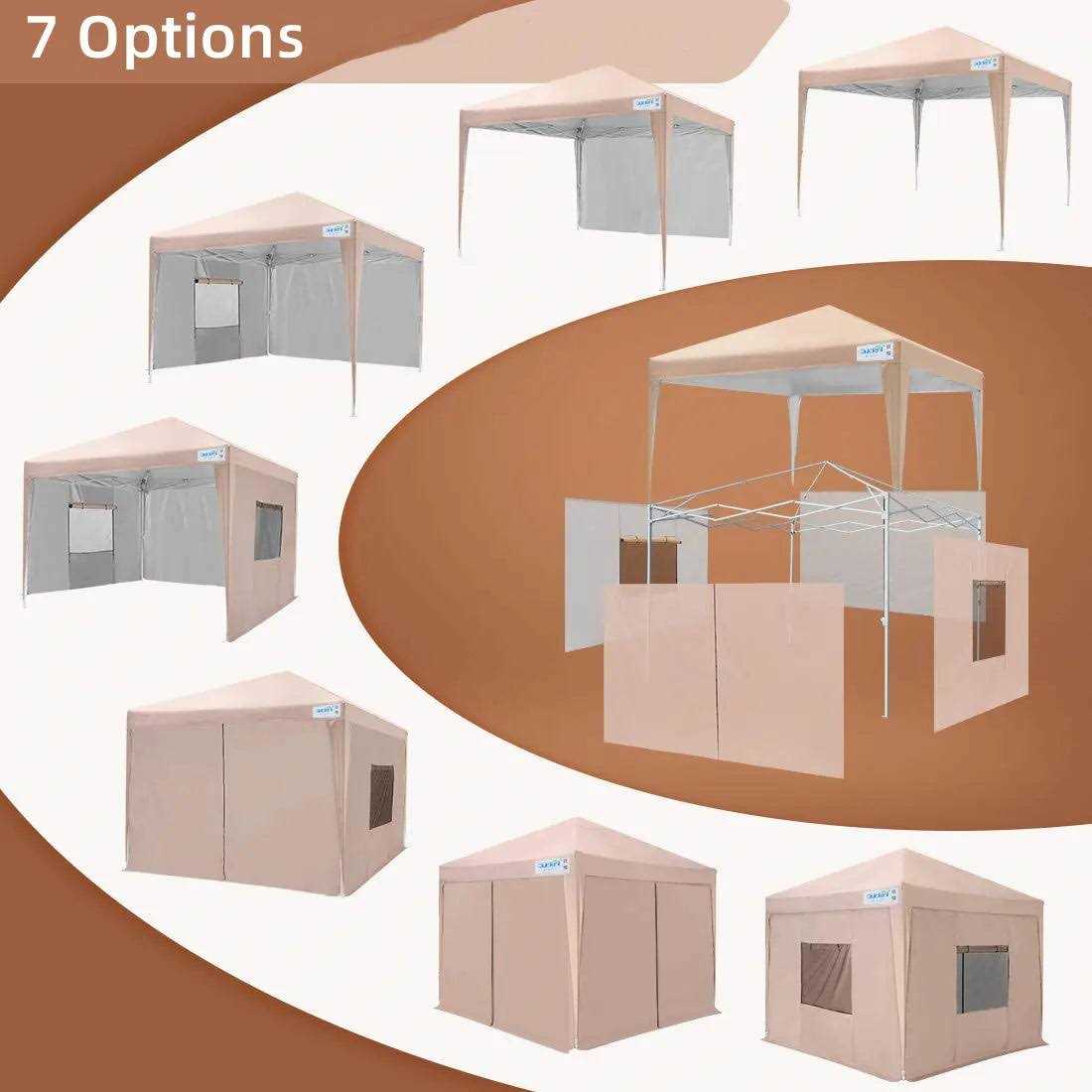 - Size: 8 ft x 8 ft Adjustable heights: Height to Top: 8.5′ / 8.2′ / 7.9′ Height to Side: 6.9′ / 6.6′ / 6.3′