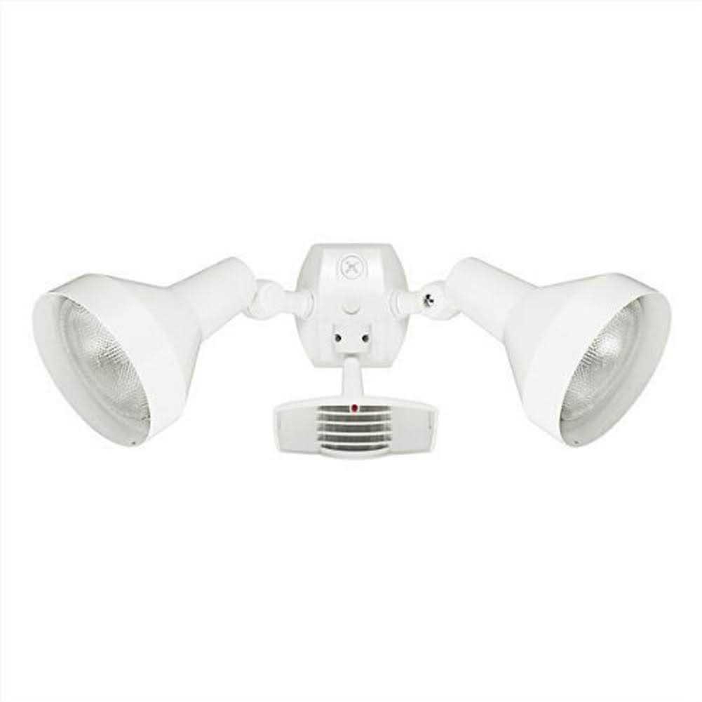 - Sensor with twin floodlights for motion-activated outdoor security lighting