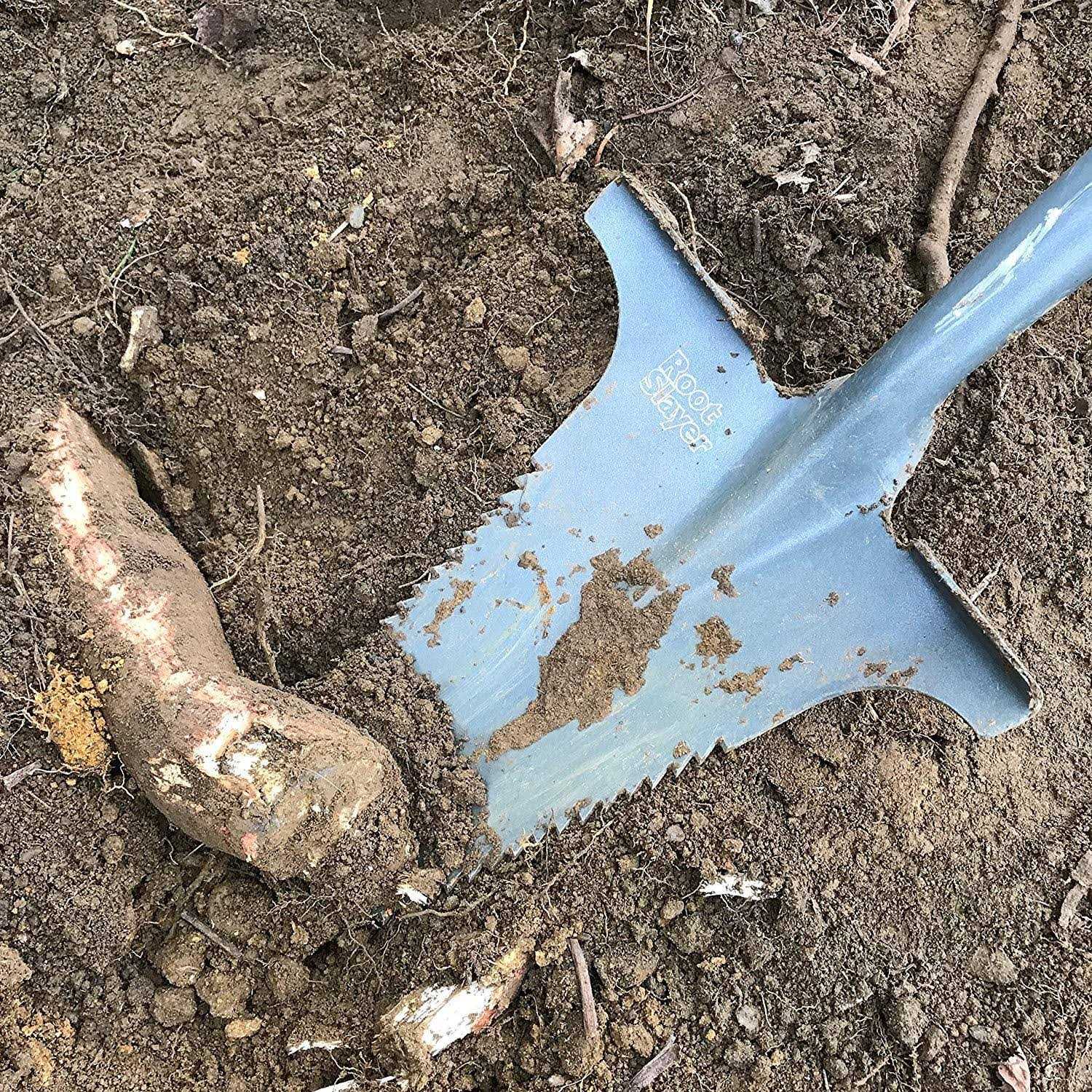 - Digging shovel with V-shaped cutting tip to easily rip roots and dirt