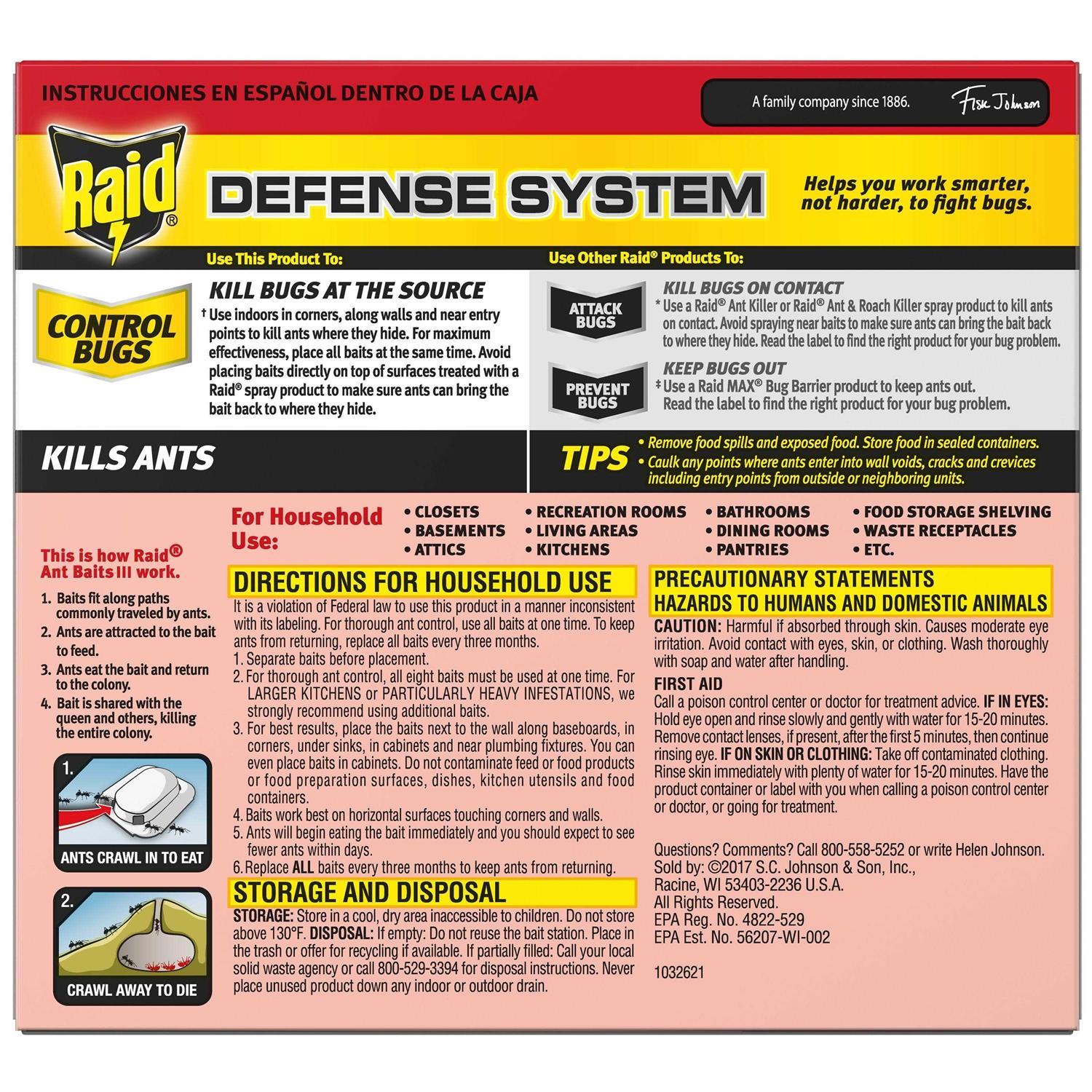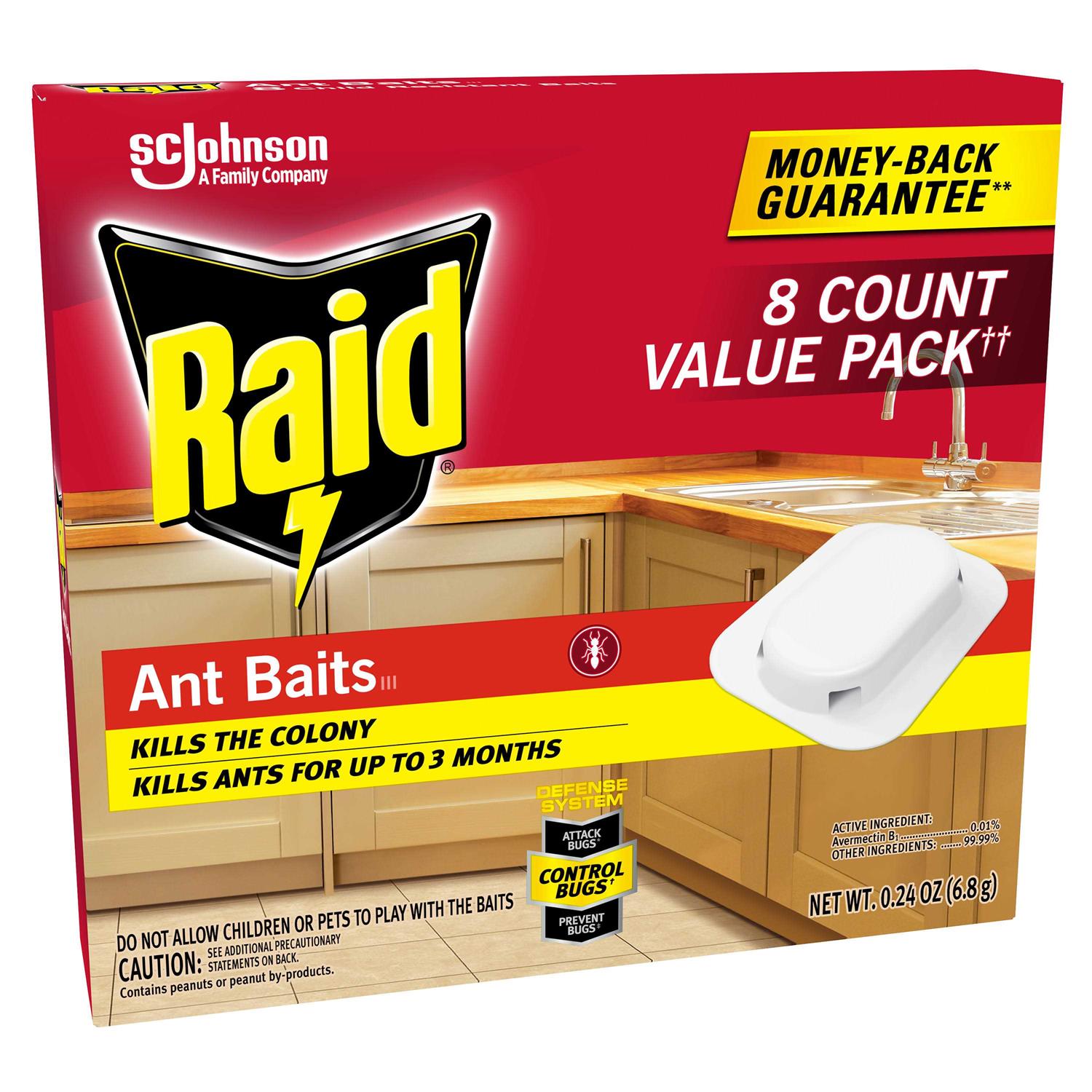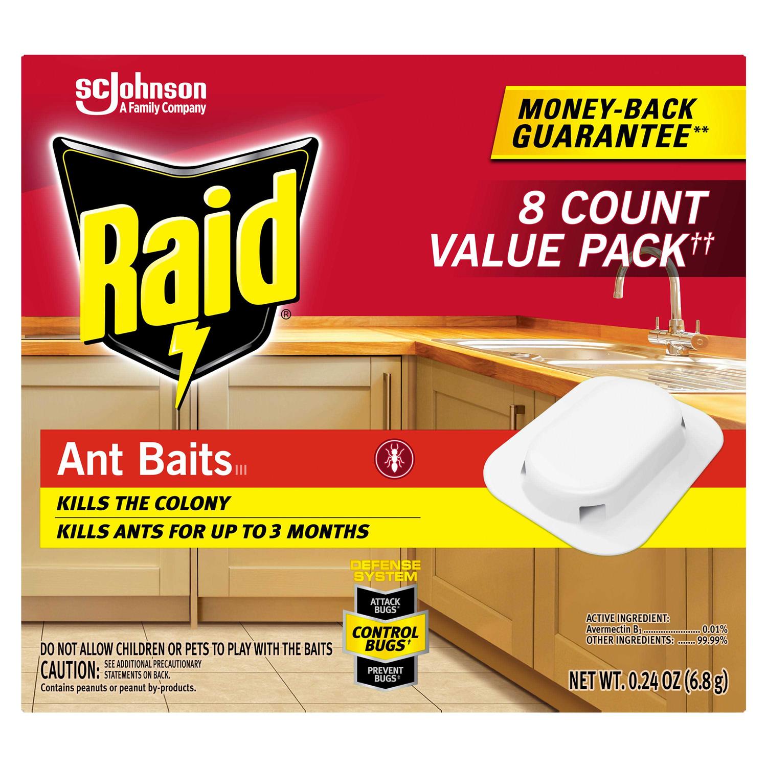 One 8 count package of Raid Ant Killer Baits protects against ants where they hide