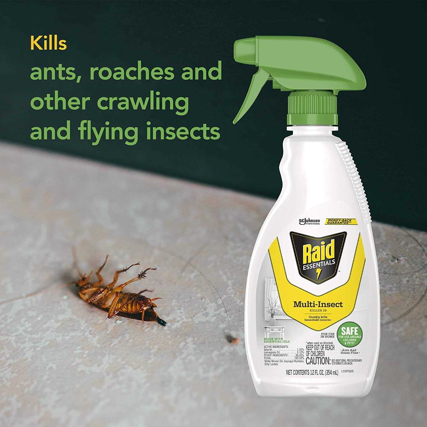 The formula is specifically designed with plant-based ingredients to kill bugs, and is safe to use in your home. Now you dont have to choose between being safe or effective when selecting products to protect your home from bugs. The convenient trigger spray makes it easy to target the bugs, taking care of the problem quickly and safely. This fast-acting ant killer, cockroach killer, bug killer and stinkbug killer also deals with other crawling and flying insects, and is also an effective spider spray. And since its designed with plant-based ingredients to kill bugs, you don’t have to worry about children or pets using the same space. Raid Essentials, made with essential oils.