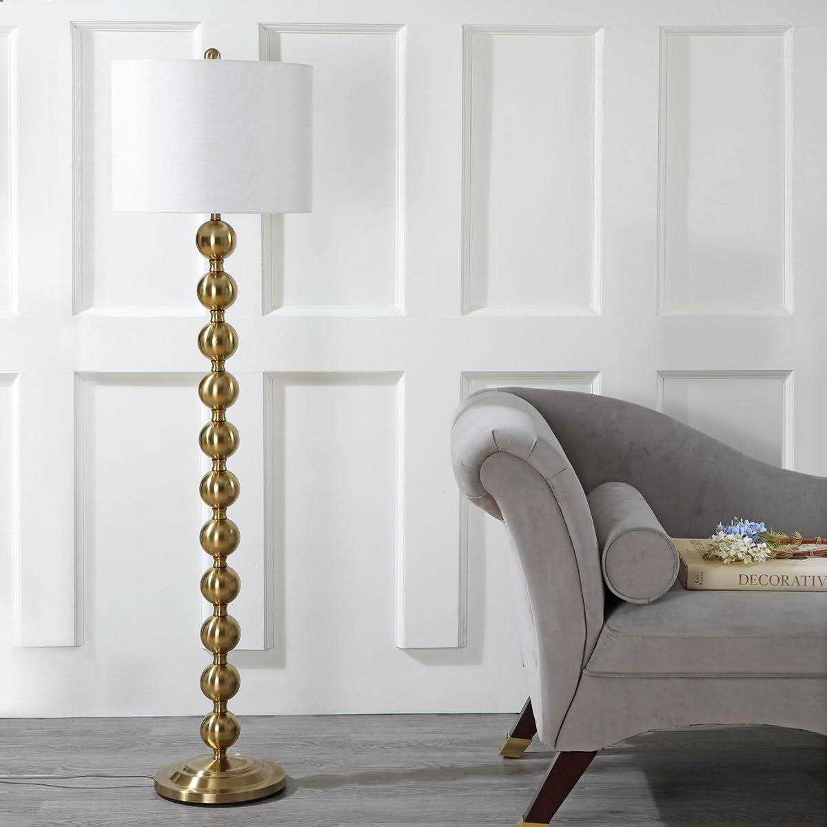 Finished in your choice of available finish, the Safavieh Reflections 58.5 in. Stacked Ball Floor Lamp will add a touch of modern-glam to your living space. This chic floor lamp is topped with a crisp white cotton shade to lighten the mood. The frame of this contemporary lamp is crafted using smooth, sturdy metal for added strength and stability.