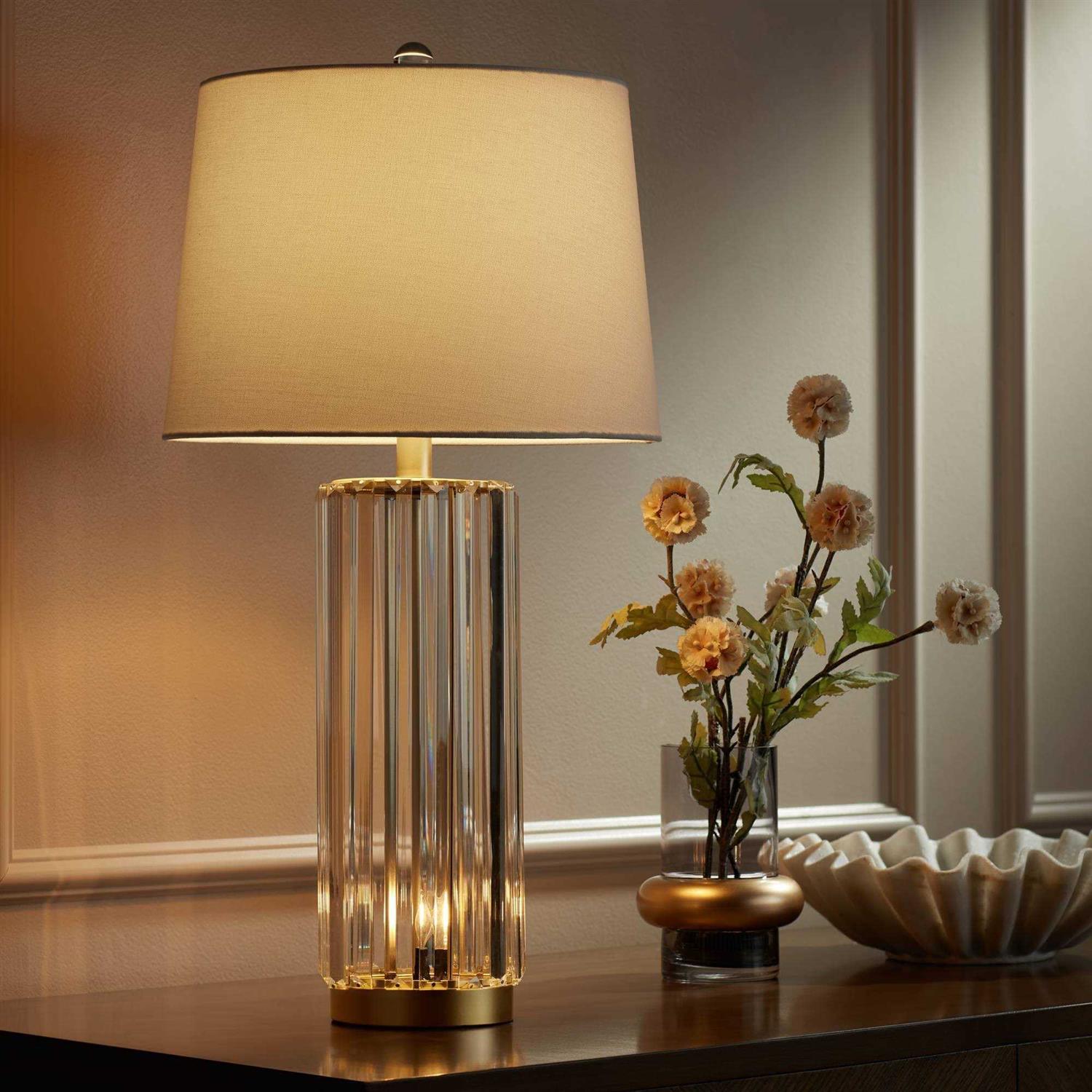 - Rivera glass table lamp with night light from the Regency Hill brand.