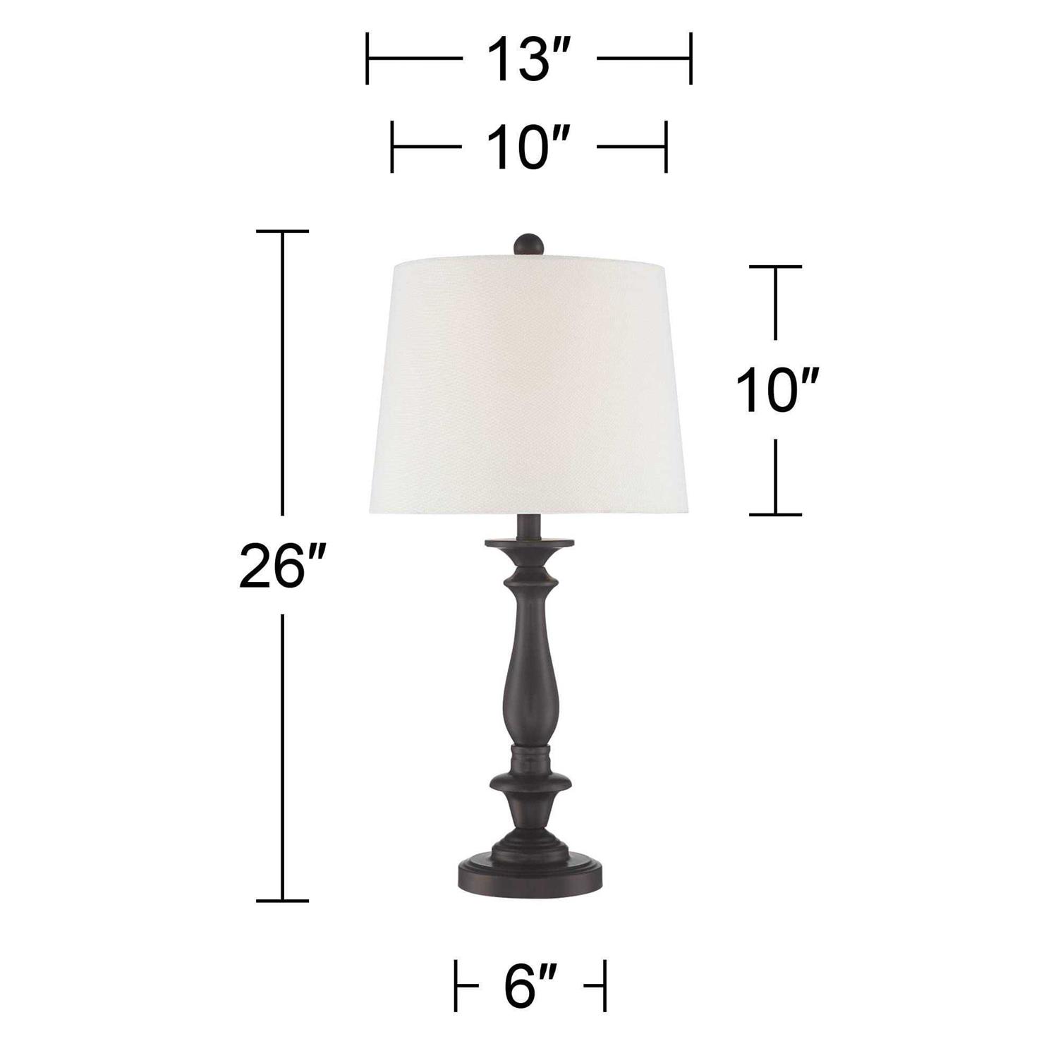 Regency Hill Rustic Traditional Table Lamps 26 High Set of 2 Dark Bronze Metal Candlestick White Drum Shade for Bedroom Living Room House Bedside