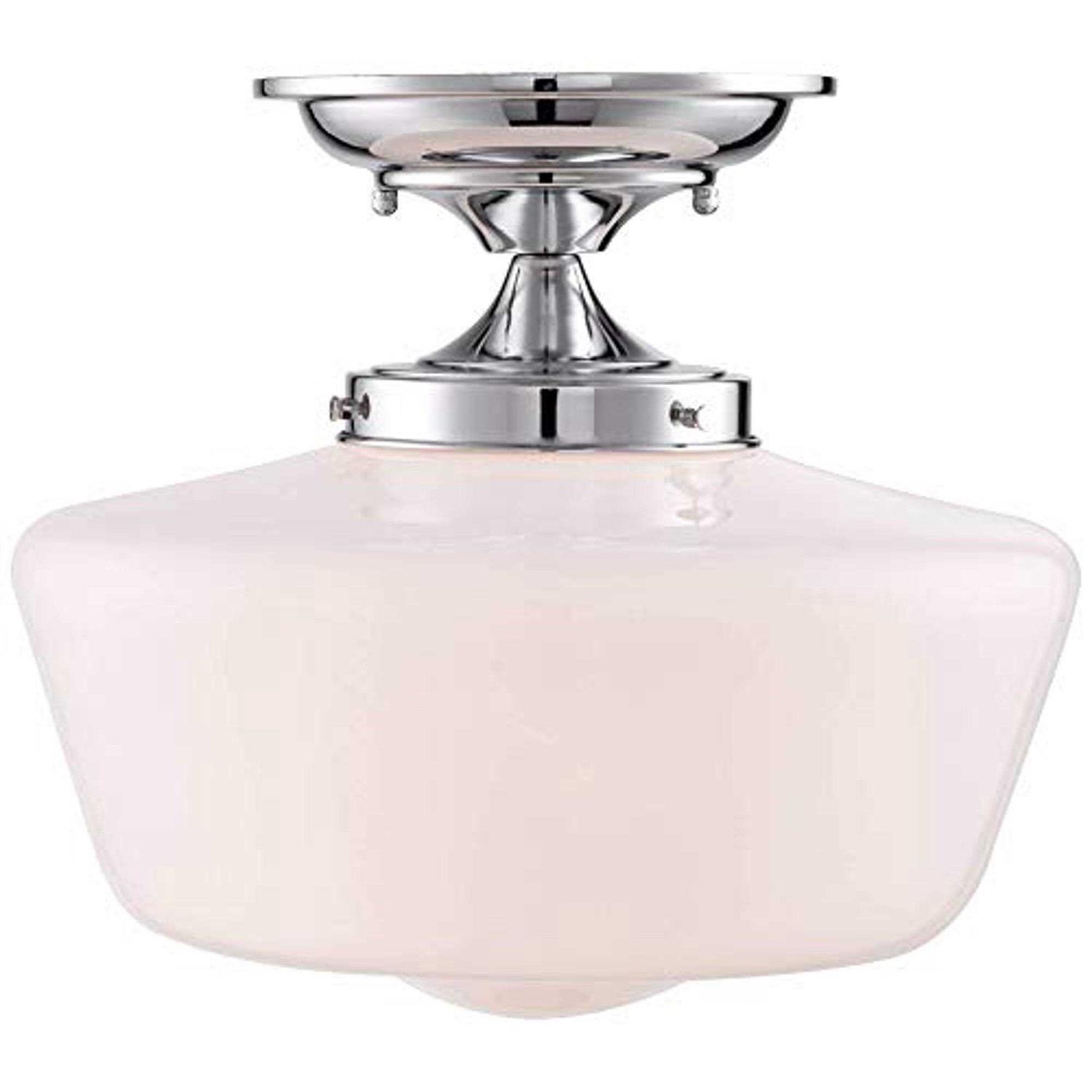 Schoolhouse Floating 12″ Wide Chrome Opaque Ceiling Light