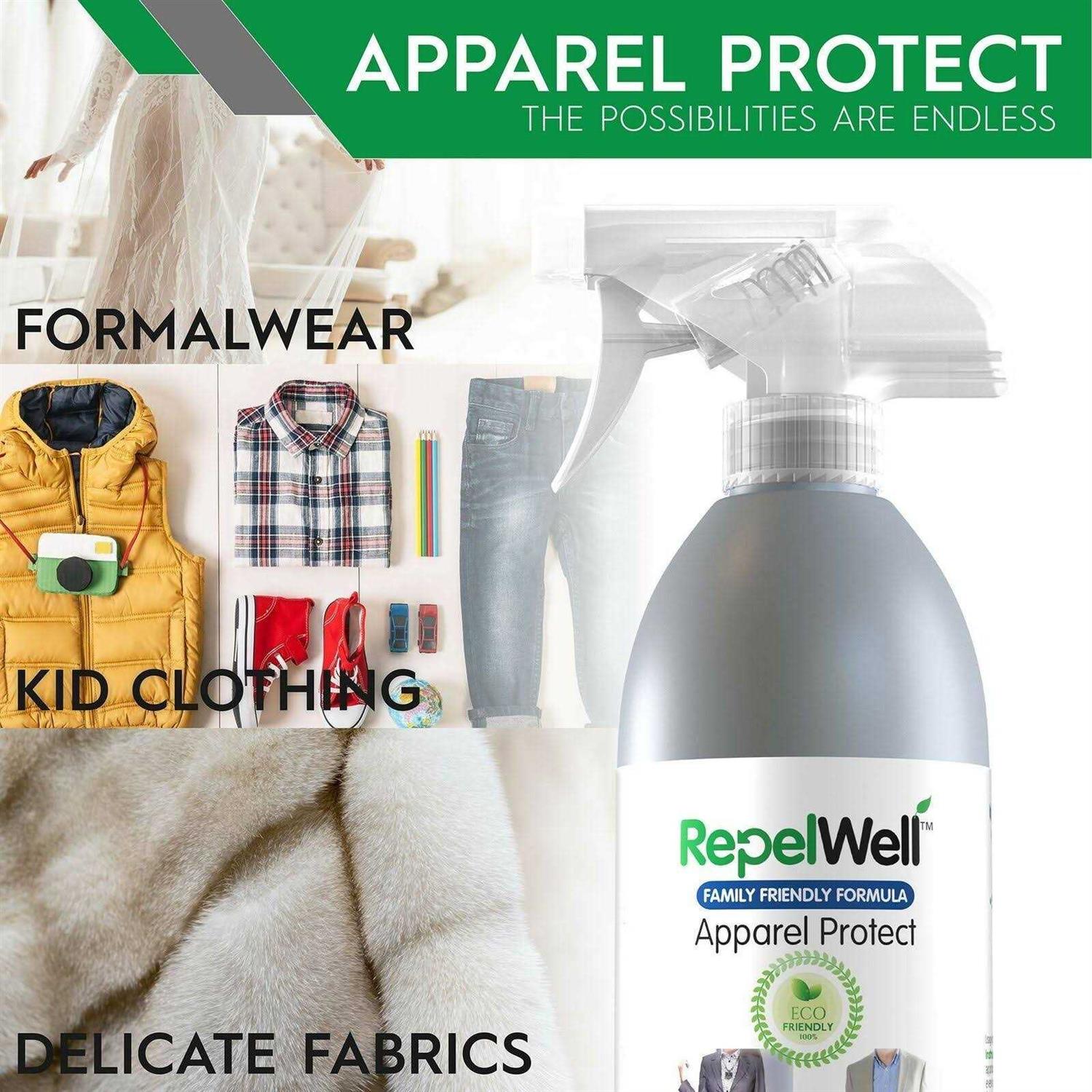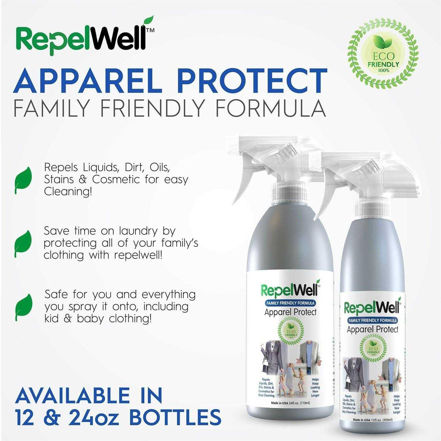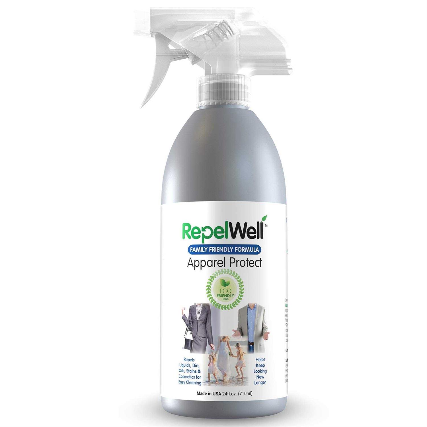 Ultimate stain prevention. Spray RepelWellTM Multi-Protect on clothing, upholstery, shoes, boots and more to keep your belongings looking new, longer! This revolutionary eco-safe formula is unlike any stain guard you’ve ever used. It forms a non-toxic shield that repels liquids, dirt, oils, stains, cosmetics, wine, coffee, tea and more without changing the color, texture or breathability of the surface. Stain and spill protection lasts through multiple washings and wipe-downs, for up t