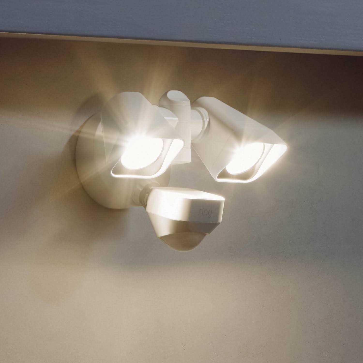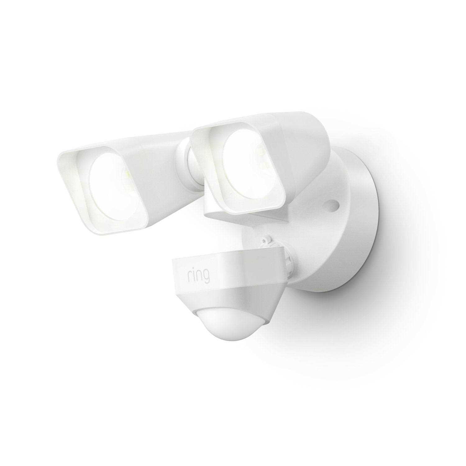 Shine 2000 lumens of brightness on your driveway, side yard and high-traffic areas with a hardwired adjustable Floodlight. Connect it to the Ring Bridge (sold separately) to unlock smart controls and custom combinations in the Ring App. The Ring Bridge groups together Ring Smart Lights and connects them to Ring doorbells and cameras. If one Ring Bridge-enabled device detects motion, it can turn on lights, activate cameras and more. You can also use the Ring Bridge to link your Ring Smart Lights to select Alexa-enabled devices to turn on lights and adjust settings at the sound of your voice. Shine 2000 lumens of brightness with 5000K color temperature when motion is detected. Pairs with Ring lights, doorbells and cameras via the Ring Bridge to activate connected devices when motion is detected. Links to select Alexa-enabled devices through the Ring Bridge to turn on lights and adjust settings at the sound of your voice. Connects to standard AC wiring with an included toolkit to install above driveways and other high-traffic areas. 7.0″H x 8.35″W x 7.24″D Weight: 2.1 lbs.