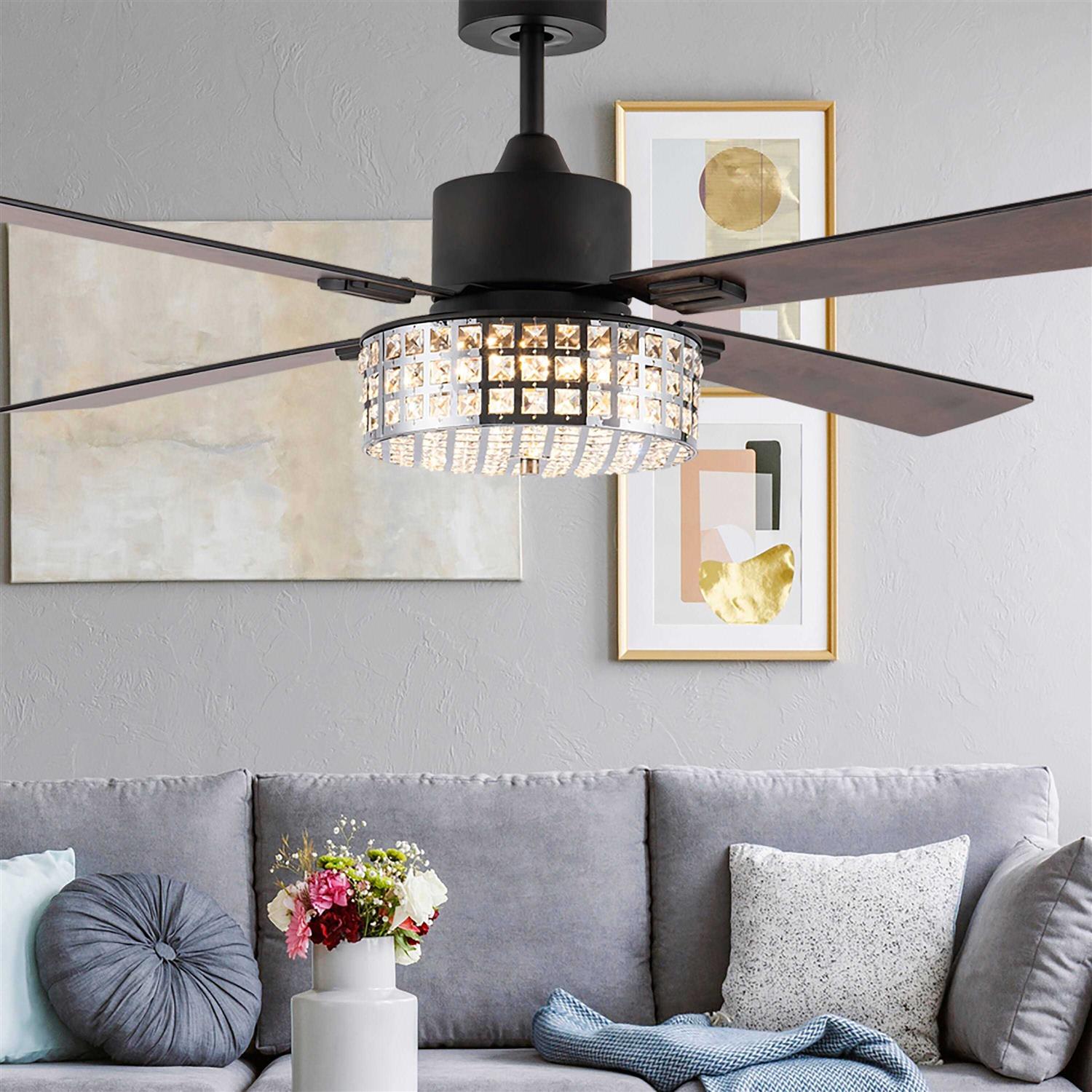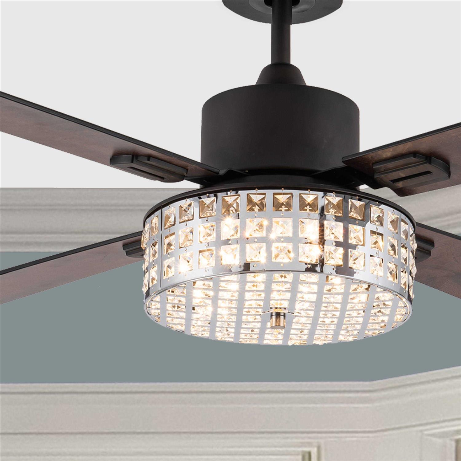 You’ll love to gift your space with dazzling overhead lighting while lending efficient airflow with the Yuna Oil-Rubbed Bronze Metal and Crystal Glass 52-Inch LED Ceiling Fan from River of Goods. Four woodgrain blades with a reversible design let you showcase either a rich barnwood or light driftwood finish to suit your aesthetic, making this bronze ceiling fan a warm and welcoming addition to your existing interior decor. An LED panel housed within a silver metal shade provides multidirectional light for a bright ambiance, and square cutouts with dangling glass crystals help to accentuate the glowing aura. You can either install this fan flush mounted into the ceiling or at a six-inch drop to suit the room it’s placed in, and control the speed and light settings with the included remote.