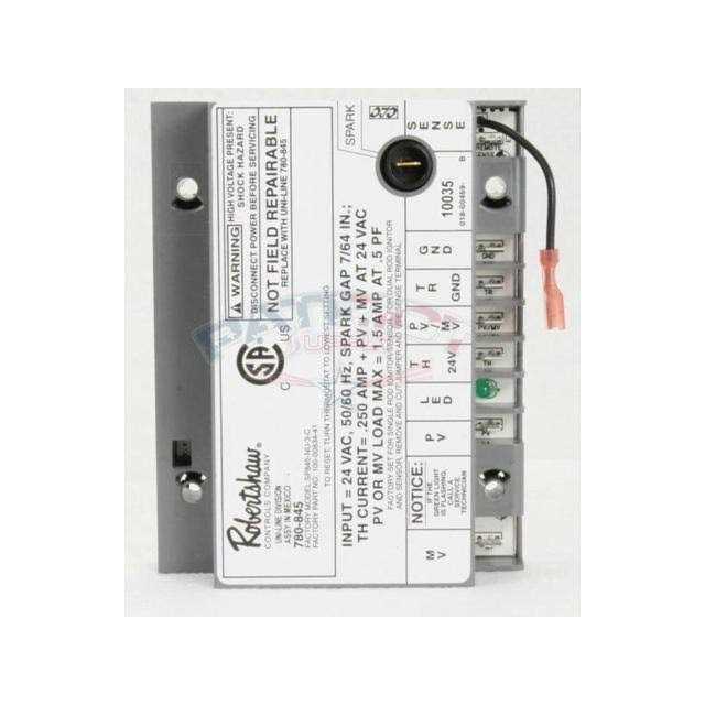 When the thermostat calls for heat the 780-845 control simultaneously initiates ignition sparking and opens the pilot valve portion of the gas valve. Pilot flame recognition stops ignition sparking and opens the main valve portion of the gas valve. Pilot burner flame is continuously monitored at a synchronous frequency for the duration of the heating cycle. Should the pilot flame fail during the heating cycle the control will shut off the main valve until the pilot flame is established. The 780-845 lockout ignition control provides 90 seconds of spark followed by a 6 minute time delay purge between ignition attempts. After three tries if no pilot flame is sensed the control goes into a one-hour lockout period. At the end of the lockout period if the demand for heat is still present the unit will repeat the three tries for ignition. During lockout you may override the auto-system and manually reset the unit at the thermostat. The green diagnostic LED will be on continuously for normal operation. The LED will be off for internal lockout and will flash continuously for problems external to the control ie. not sensing flame.