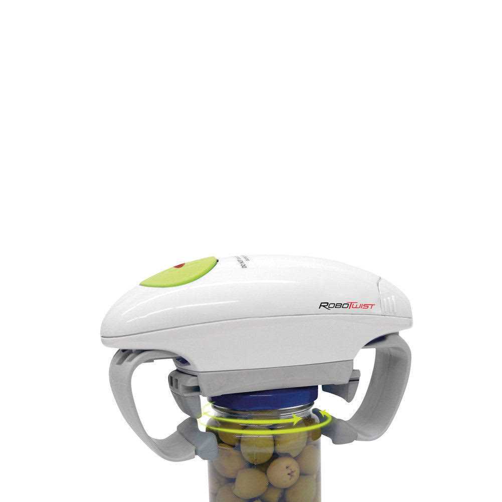- Robo Twist Hands Free Jar Opener technology allows you to grip, twist, and open stubborn jar lids with the simple press of a button