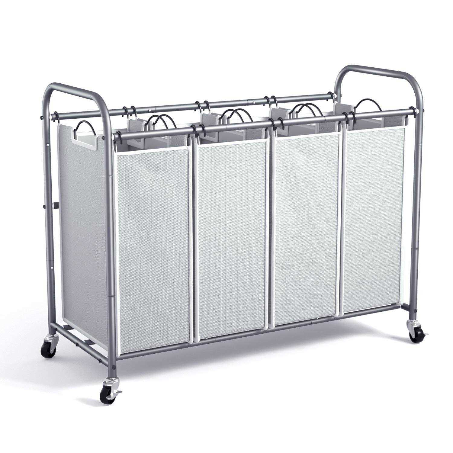ROMOON 4 Bag Laundry Sorter Cart Laundry Hamper Sorter with Heavy Duty Rolling Wheels