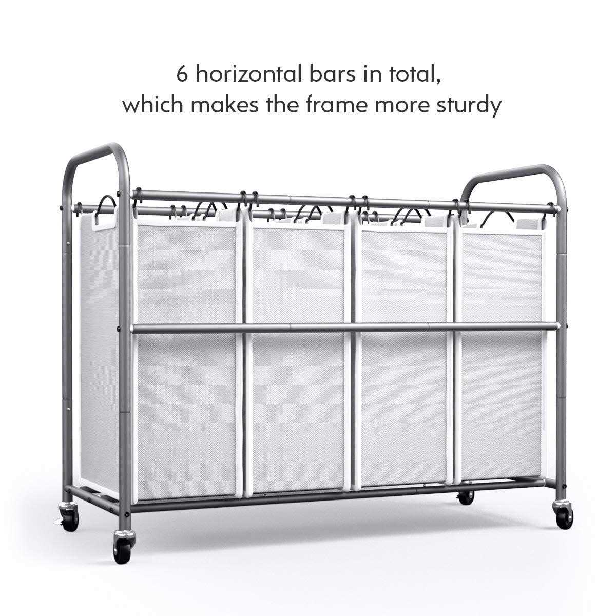 ROMOON 4 Bag Laundry Sorter Cart Laundry Hamper Sorter with Heavy Duty Rolling Wheels for Clothes Storage