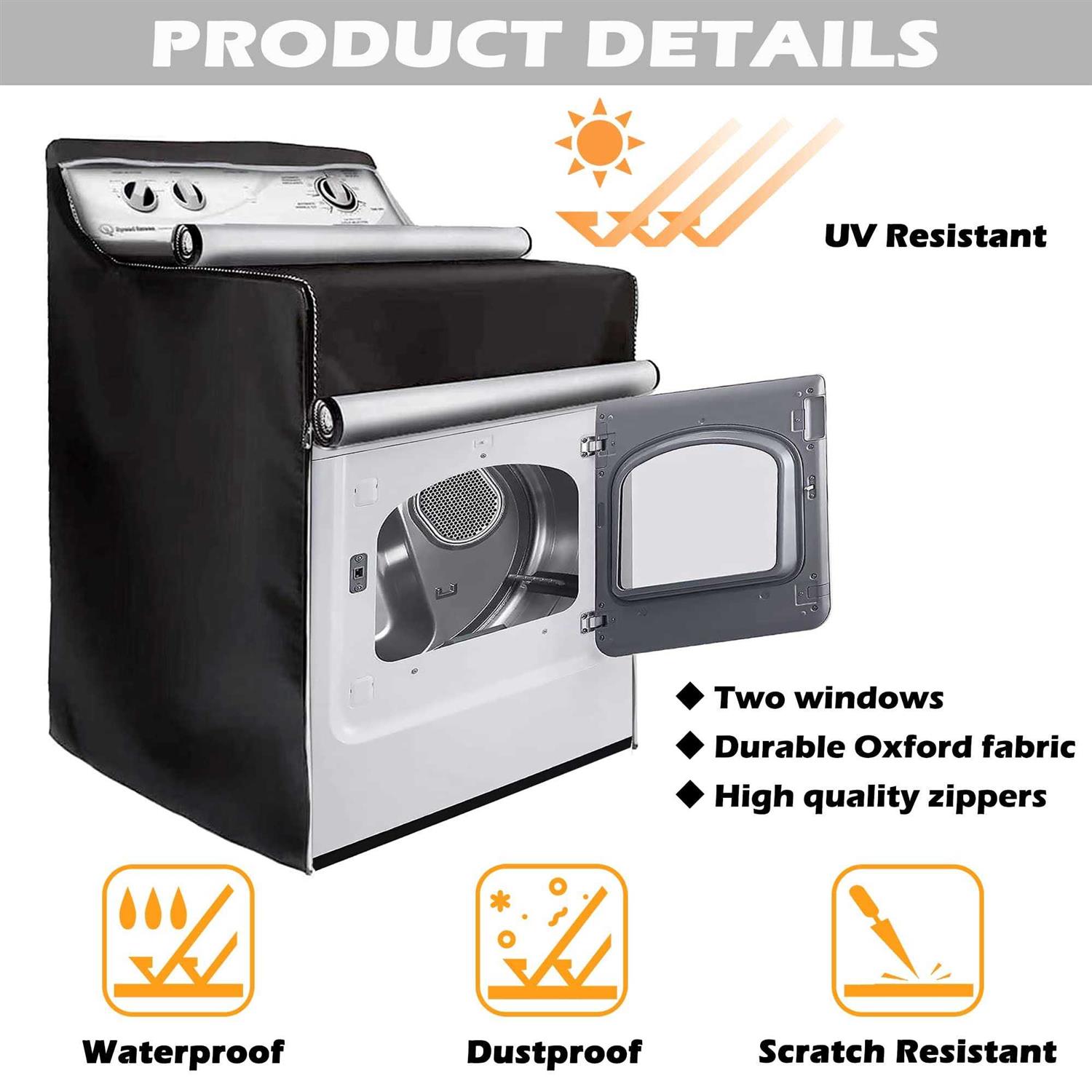 Royxen 2 Pack Washer and Dryer Covers Waterproof Two Zipper Design,Fit for Most Front-Loading Machine 29” L x 28” W x 43” H, Black