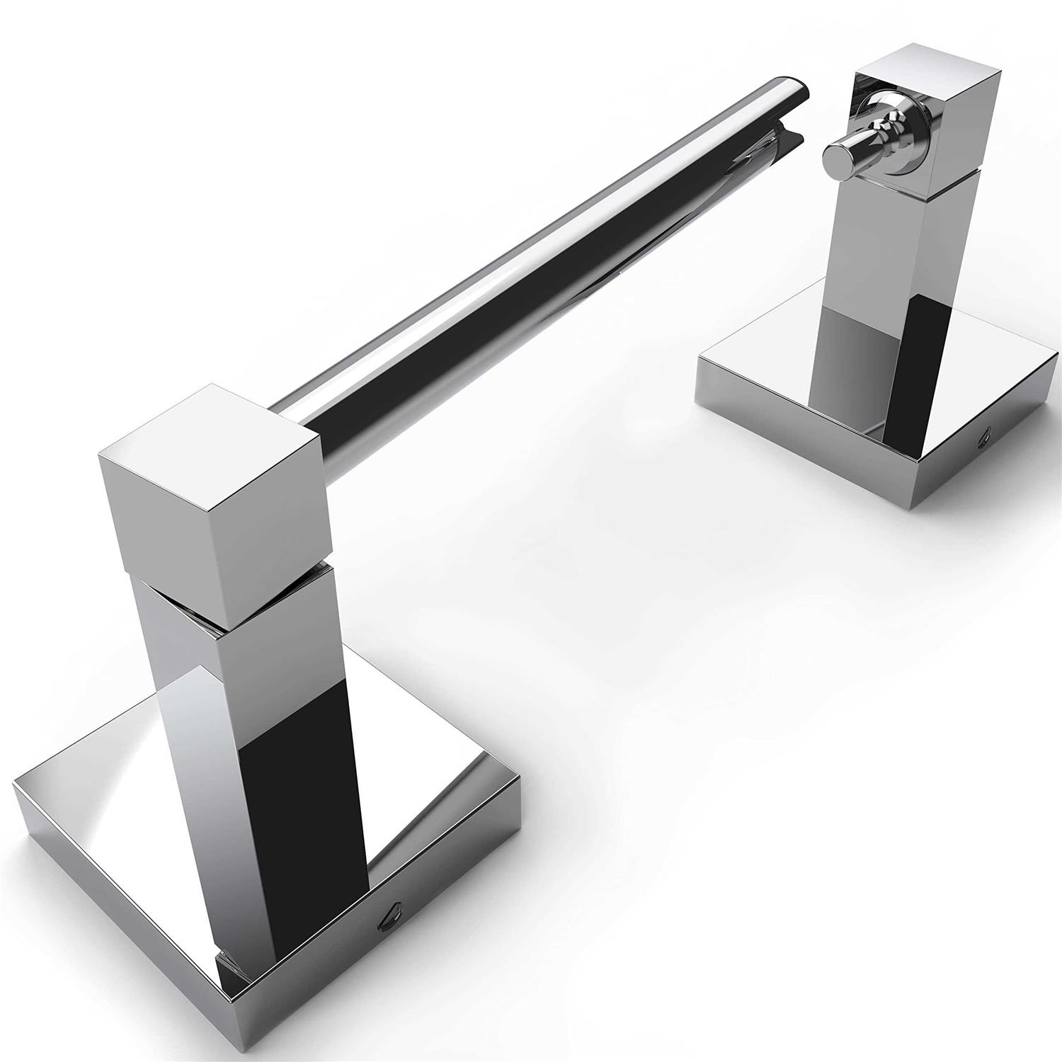 DOUBLE POST PIVOTING DESIGN: No more hassling with those plastic tubes and springs. Easy for Paper Changing. Lift up the right end of the bar to change paper roll. Meanwhile, Double post pivoting could prevent the roll from falling out in using. FINISHING: Polished sliver finishing, contemporary style and practical designs. You can install it in your bathroom or kitchen. It can be well integrated into your decoration style. Smooth edges are safe for you and your kids and protect you from scratching. HIGH QUALITY: This toilet paper holder is made of high-quality Stainless Steel and Zinc Alloy, rust-proof in damp conditions. This will make your bathroom decoration look like new. It is easy to care and clean, just wipe it with a dry towel or sponge for cleaning. EASY TO INSTALL: The hidden screw design of this Wall-mounted toilet paper holder enables the product to be firmly fixed on the wall. The package includes all installation accessories needed, installation template, screws, anchors, slotted screwdriver and manual.It makes you install this toilet paper holder quickly. MULTIPLE INSTALLATION DIRECTIONS: The base of this toilet paper holder designed with anti-rotation allow to install it horizontal, vertical, or any degree you prefer. Warning: The toilet paper holder fits regular roll. Large roll of TP is not suitable for this toilet paper holder.