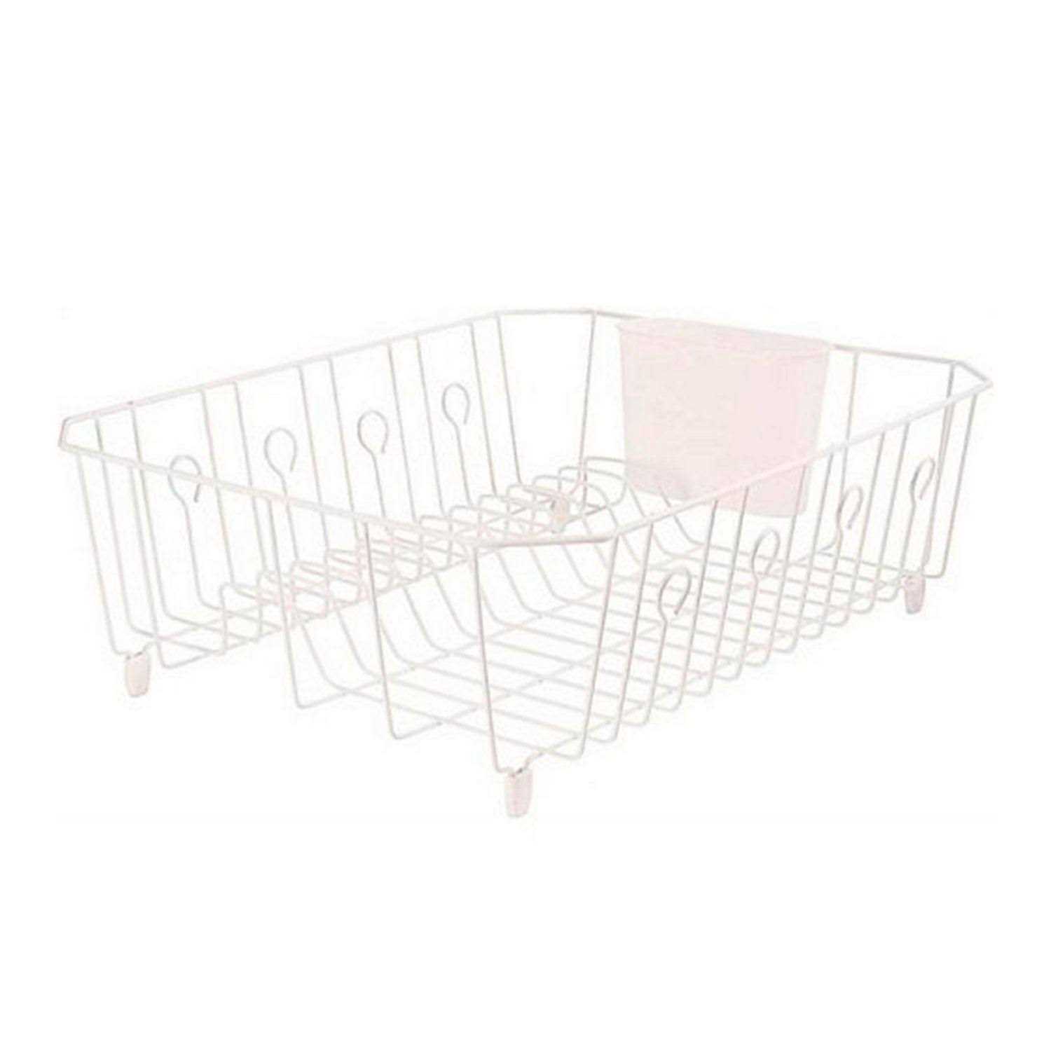 Newell Rubbermaid Home Fg6032arwht Lg Whte Dish Drain Cushion-coated steel frame holds heavy loads without buckling. Rubber feet prevent slipping. 8 sturdy wire loops to securely hold glasses, and detachable cup for silverware. 13.81 x 17.62 x 5.93 high. Silverware holder is oval shape.Color=WhiteLARGEUnit: EA Newell Rubbermaid Home Fg6032arwht Lg Whte Dish Drain FG6032ARWHT Capacity: 13 Dishes Color: White Height: 18.4 inLength: 17.62 inWidth: 13.81 inWarranty: 1 Year Limited VORG6276232