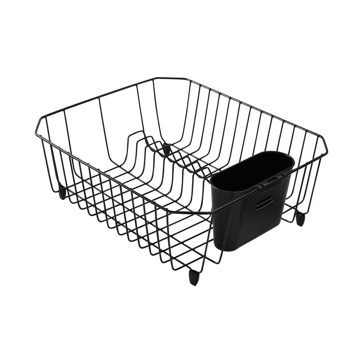 14.3″L x 12.5″D x 5.4″W. Antimicrobial product protection treated with microban to inhibit growth of stain & odor causing bacteria. Small plastic coated wire dish drainer. Extra deep for maximum capacity. Use with dish drainer tray. Coated wire cushions & protects dishes. Includes silverware holder.