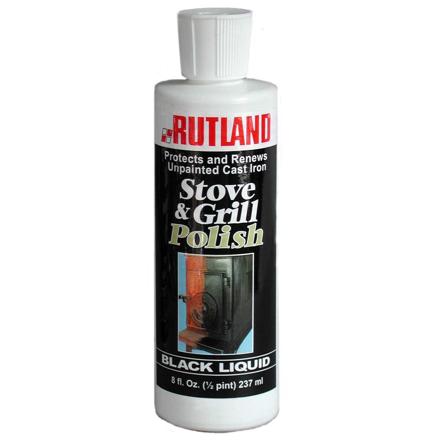 Maintain your stove’s original shine with Rutland Liquid Stove and Grill Polish. Convenient, non-toxic liquid formula applies easily and keeps rust at bay. For use on unpainted cast iron only. Protects all natural cast iron from rusting while providing a lustrous shine. For cast iron stoves, grills, ornamental work, railings, fences etc. Restore the beauty of your antique cast iron stove. Preserve heating equipment and barbeque grills out of season. Non-flammable and non-corrosive. A blend of fine natural waxes and black pigments. Do not use on painted or enameled stoves.