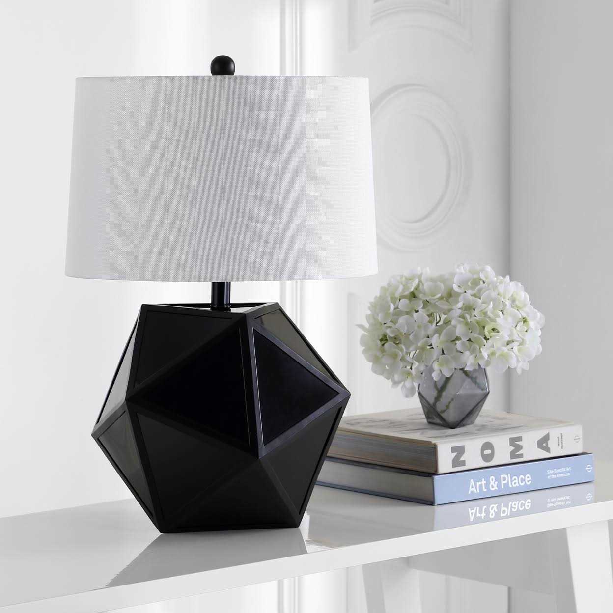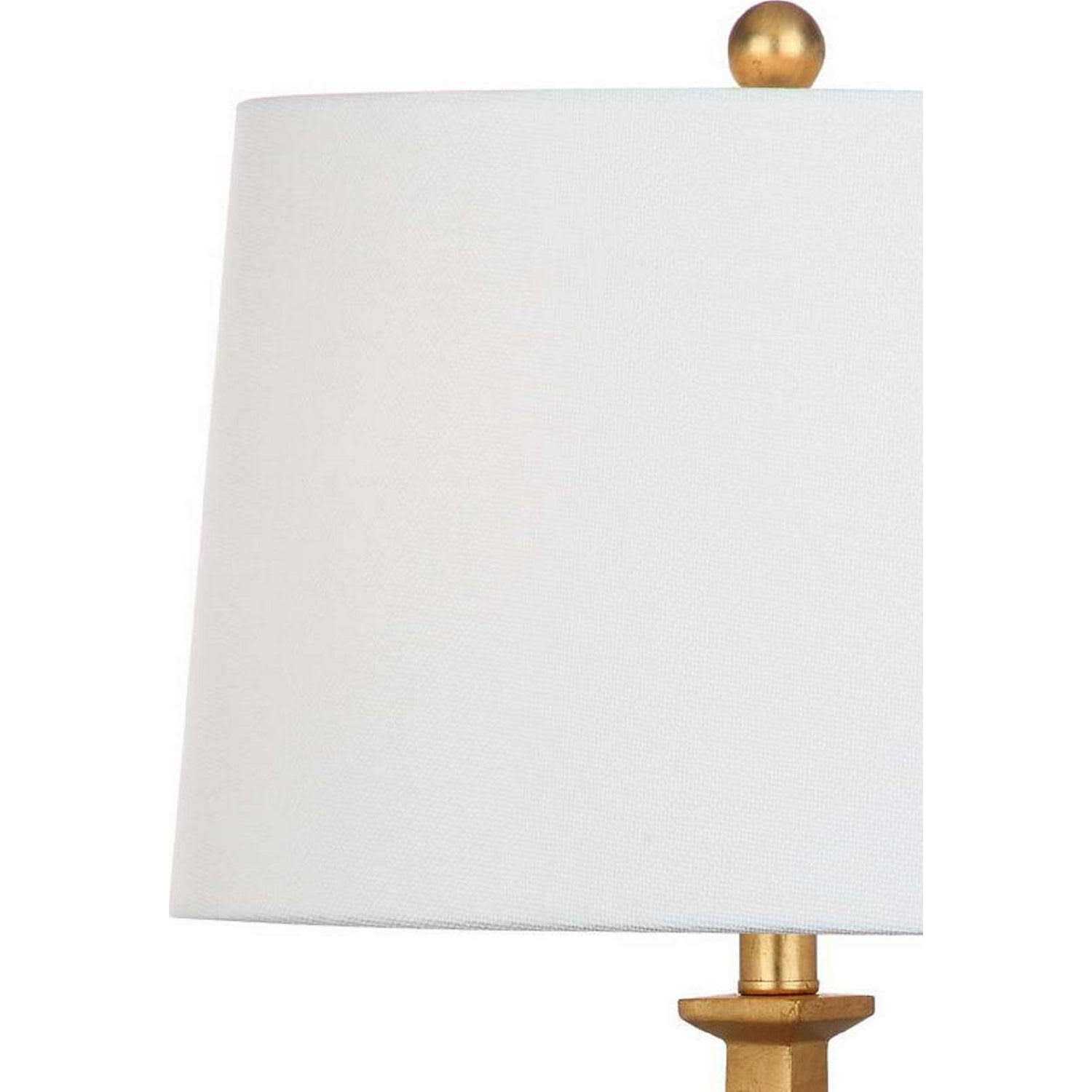 An iconic pre war apartment on New Yorks Upper East Side inspired this modern table lamp. Finely crafted, its gold finish illuminates any living room or bedroom with timeless grace and style. The clean lines of its off white shade complement any dcor. Begin your rug, furniture, lighting, outdoor, and home decor search and discover over 100,000 SAFAVIEH products today.