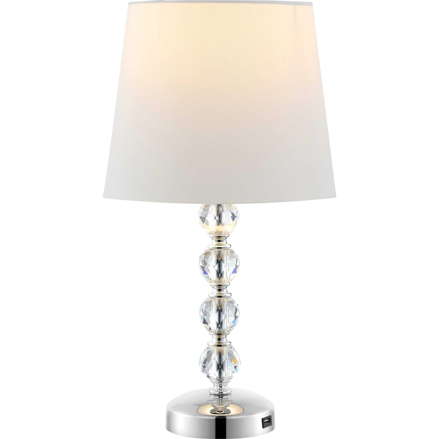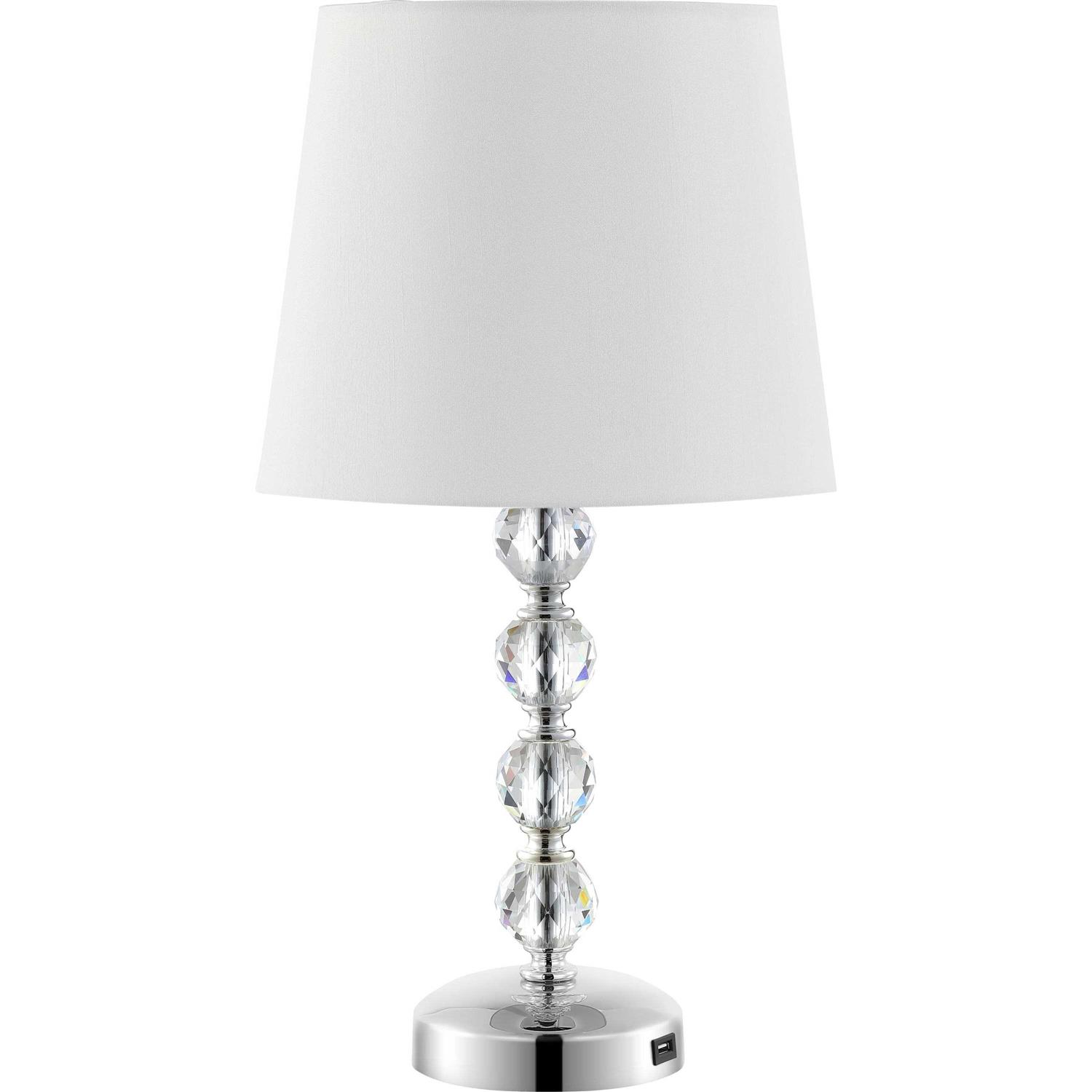 Illuminate your living space with a stunning table lamp set from Safavieh’s lighting collection Features 4 stacked crystals with a chrome finish and off white polyester shade CFL bulbs are included for convenience and added efficiency This table lamp set works beautifully by the bedside on a nightstand, console table, in the home office, living room, or dining area Safavieh has been a trusted brand in home furnishings for over 100 years, providing quality craftsmanship and unmatched style Artful faceting adds glamorous brilliance to any room the elegant Nola stacked crystal ball table lamp inhabits. Crafted in the traditional style of European glassmakers, the crystal looks fresh and new in its arrangement and design. An updated round white Geneva shade completes the look. Cord length 61 inches.
