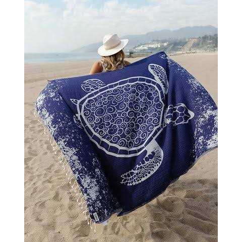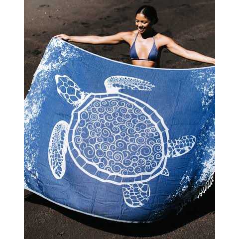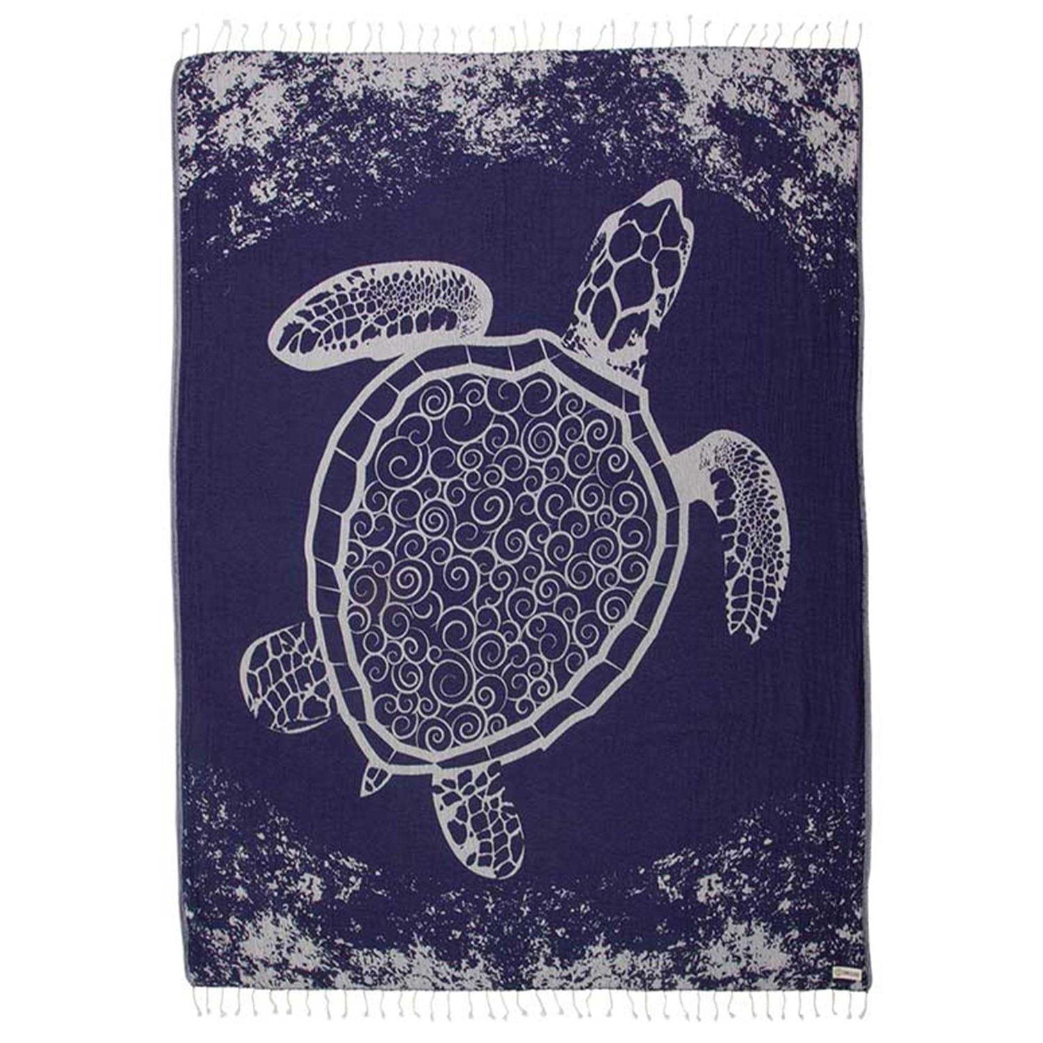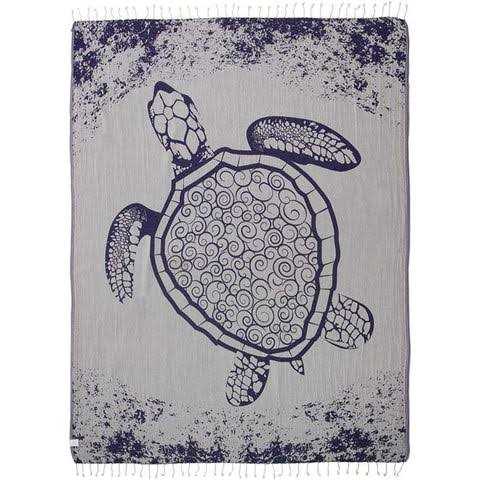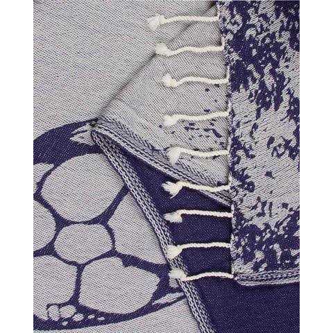 Turtle design, made from Turkish organic cotton for a softer hand feel, single weave jacquard, twisted tassel fringe and sand resistant.
