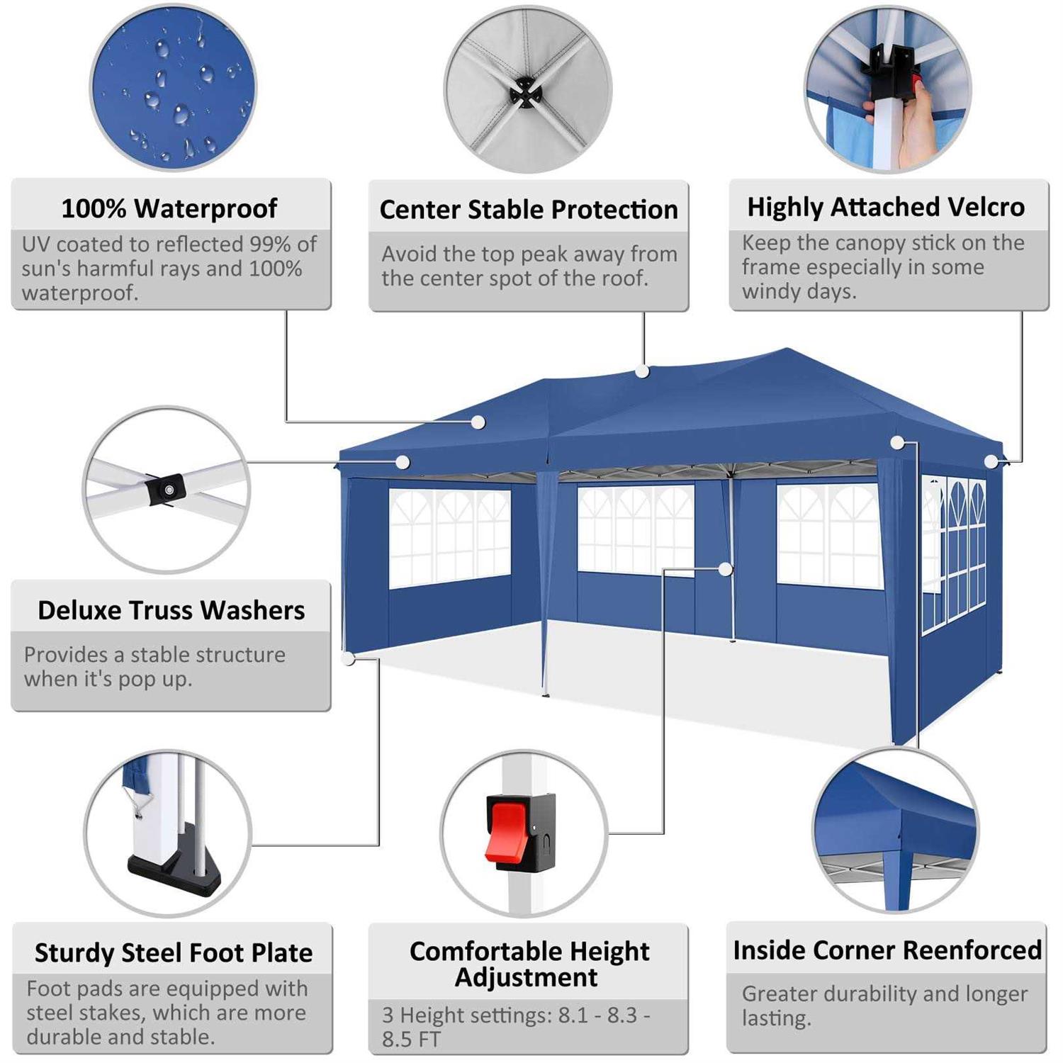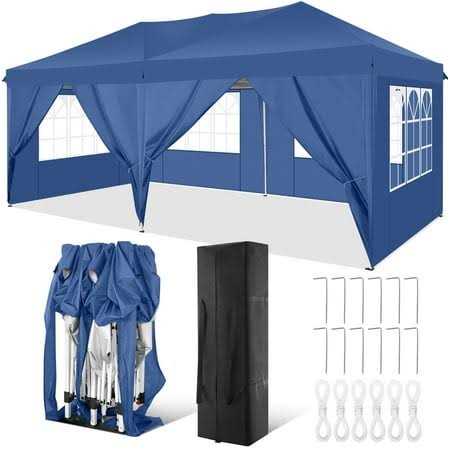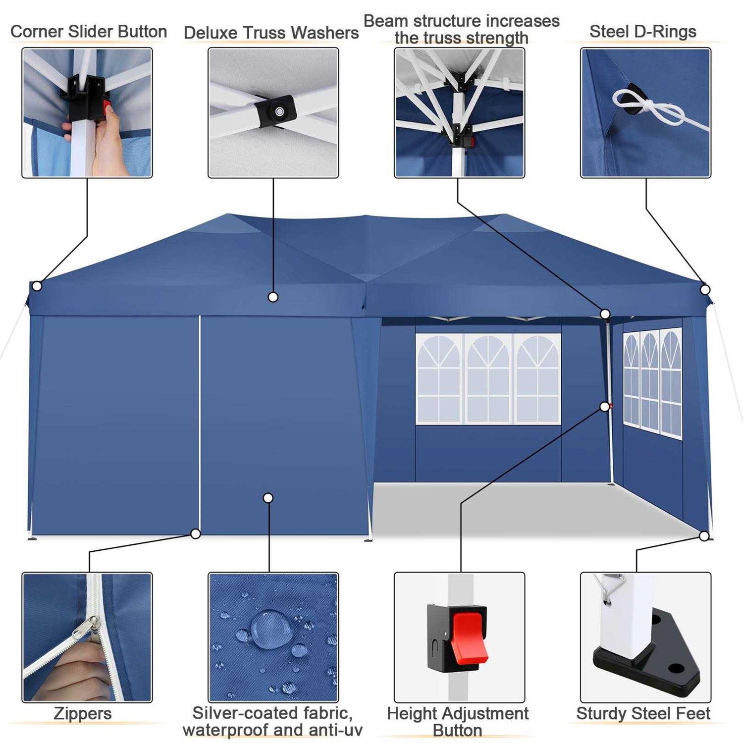 Sanopy 10′ x 20′ EZ Pop Up Canopy Tent Party Tent Outdoor Event Instant Tent Gazebo with 6 Removable Sidewalls and Carry Bag, Blue