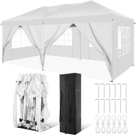 Sanopy 10′ x 20′ EZ Pop Up Canopy Tent Party Tent Outdoor Event Instant Tent Gazebo with 6 Removable Sidewalls and Carry Bag, White