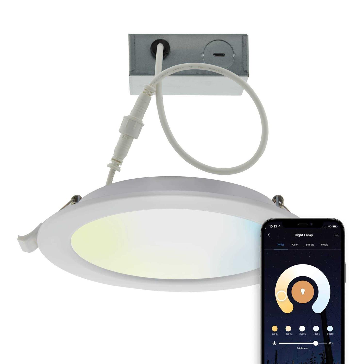 Live life enlightened when you switch to this ultra thin LED smart downlight fixture from Starfish by Satco. Download the Starfish app on your iOS or Android device. Gain full control over this fixture’s color temperature from 2700-5000 Kelvin as well as the ability to dim your lighting, all from the convenience of the Starfish app on your phone.