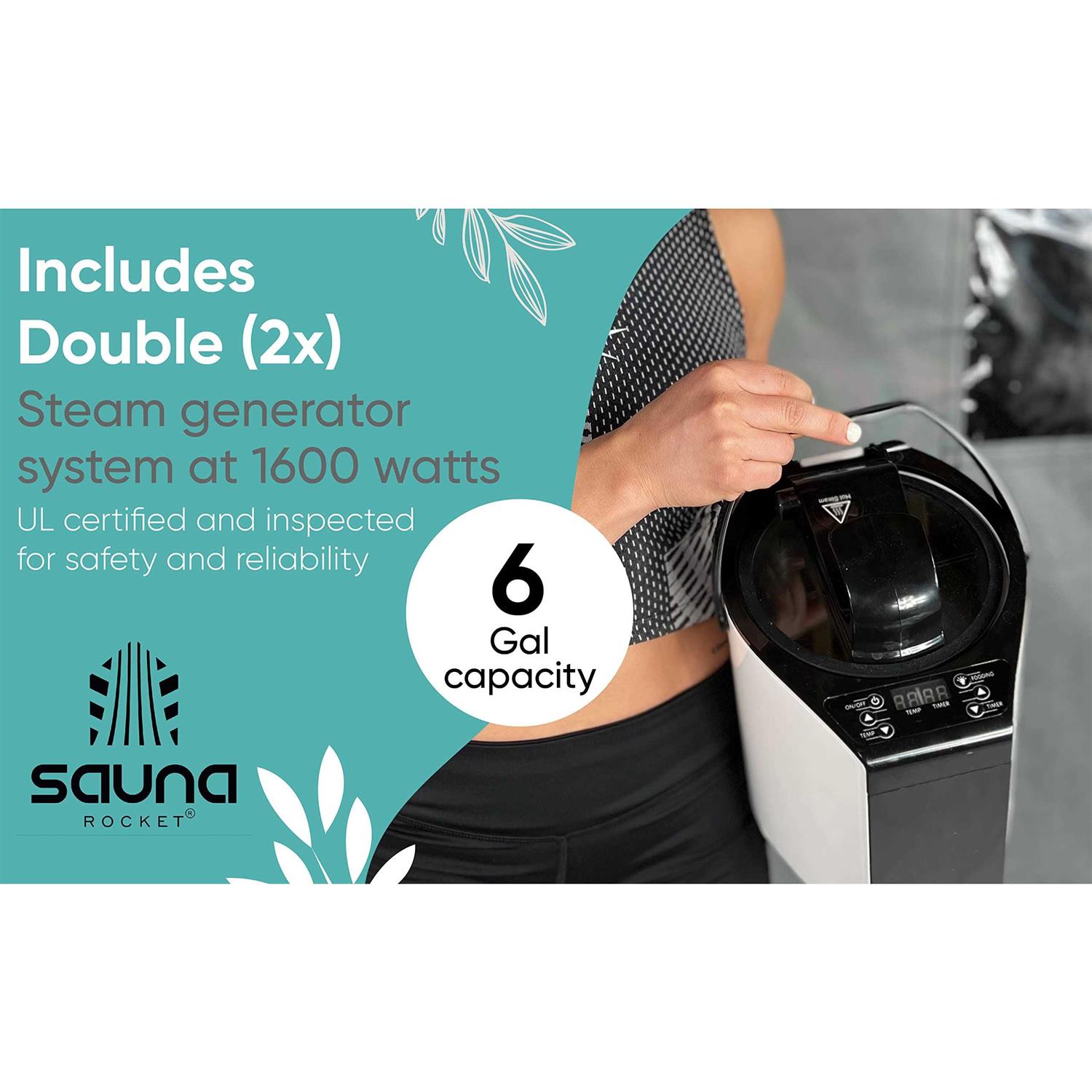 IN-HOME SAUNA – Enjoy the relaxation brought by the sauna at home without going out. Comes with a leak-proof design to ensure that your sauna session is uninterrupted. Place the steamer inside, sit on your foldable chair and relax. (Inlcudes Tent & Steamers) PORTABLE DESIGN: Can be assembled within minutes with no tools. The new sauna space design supports a true full body sauna, similar to a traditional wooden sauna but more convenient and easy to use. HOME RELAXATION: Use this personal sauna to relax after a busy day and enjoy a rejuvenating full-body sauna anytime and in the privacy of your own home. It can help you relieve stress and fatigue, detoxify body, and help eliminate negative emotions. SAUNA BENEFITS – Receive the many benefits of a sauna from the comfort and privacy of your own home. Recovery, Detox, Weight Loss, Relaxation, and much more. SAUNA ROCKET – From a lifetime of seeking excellent sauna experiences, Sauna Rocket was created. It is the perfect solution for an affordable home sauna experience. Everything you love about the saunas in your gym can now be experienced at home. The Sauna Rocket is the first of its kind home steam sauna kit. Within minutes you’ll have your sauna set up and be relaxing in your own home sauna. This kit includes the insulated sauna cabin and a high-powered electric steamer with tube and dispenser. This full-body sauna is unlike any other product on the market. This kit does not include a chair, if desired you will need to provide your own. This version also does not include a mood light. Enjoy rejuvenating full-body saunas anytime and at home with Sauna Rocket! This is our new 2-person model, Invite a friend to sauna with, or spread out and enjoy this steam room by yourself.