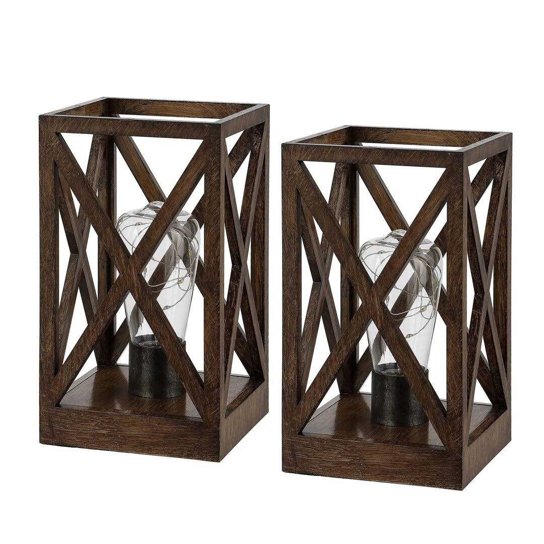 Features: Base Color: Brown Base Material: Solid Wood Base Material Details: Metal Type: Wood Type: Base Shape: Number of Lights: 1 Dimmable: No Integrated LED: No Integrated LED Wattage: Integrated LED Brightness (Lumens): Integrated LED Color Temperature: Integrated LED Color Rendering Index (CRI): Integrated LED Rated Lifespan: Range of Fixture – Maximum LED: Range of Fixture – Minimum LED: What is Integrated LED: Bulb Included: Yes Number of Bulbs Included: EU Energy Efficiency Class: Bulb Type: LED Incandescent Equivalent Wattage: Edison Bulb: Yes Wattage: Brightness (Lumens): Bulb Shape: Bulb Shape Code: Bulb Color: Clear Rated Bulb Life: Color Temperature (Kelvin): Bulb Not Included But Required: No Recommended Bulb Shape: Recommended Bulb Shape Code: Maximum Wattage (per bulb): 2 Bulb Base: E26/Medium (Standard) Dry, Damp or Wet Location Listed: Dry What is Dry, Damp or Wet Location Listed: This indicates whether the fixture is safe to use in dry locations, damp locations (moist environments), or wet locations (direct exposure to water). Battery Operated: Yes Battery Type: AA Switch Included: Yes Switch Type: Rocker Switch Location: Swing Arm: No Architect Lamp: No Built-in Outlet: No Built-in USB Port: No Built-in Wireless Charger: Theme: No Theme Cord Included: No Cord Color: Shade Included: Yes Shade Color: Shade Material: Solid Wood Shade Material Details: Shade Shape: Rectangular Fabric Type: Crystal Component: No Real Crystal: Crystal Color: Crystal Type: Set Type: Table Lamp Set Supplier Intended and Approved Use: Residential Use;Non Residential Use Life Stage: Smart Enabled: No Smart Home Hub Compatibility: Smart Home Hub Included: Smart Lighting Provider Compatibility: Control Systems: Mobile App Operating System: Connection / Protocol: Smart Lighting Functions: Shade Fitter Type: Batteries Included: No Battery Composition: Lead Acid Battery Composition: WITB Bulb Included: DS Primary Product Style: Country / Farmhouse DS Secondary Product Style: Modern Farmhouse Spefications: CALGreen Compliant: TAA Compliant: ETL Listed: c – ETL Listed: UL Listed: No What is UL Listed: c – UL Listed: MET Listed: CSA Listed for USA: CSA Listed for Canada: Children’s Product Certificate (CPC): Title 20 – California Code of Regulations: Uniform Packaging and Labeling Regulations (UPLR) Compliant: No Canada Product Restriction: Yes Reason for Restriction: Logistics CSA Certified: No UL 2108 Listed: No Title 24 Compliant: No Energy Policy Act 1992 Compliant: No CPSIA Compliant: No Fire Rated: No UN 38.3 Testing Requirements: Battery Weight/Size: Batteries Contained in Equipment: Number of Cells/Batteries: Energy or Water Efficiency Certifications: No Energy Star Compliant: USDA Bio – Based Product: Carbon Neutral / Reduced Carbon Certification: No Carbon Care Certification: Carbon Neutral Certification: Carbon – Free Certified: Carbon – RATE Certified: Environmentally-Preferable or Lower Environmental Impact Certifications: Environmental Choice Program Certified: Environmental Product Declarations – Green – Tag: SMa – RT Certified: FISP Certified: Blauer Engel: CPG Compliant: Green – Spec: EPP Compliant: Fair Trade and Fair Labor Certifications: Fair Labor Practices and Community Benefits: Fair – Trade Certified: Product Lifecycle Certifications: EU Ecolabel: LCARate Certified: Cradle to Cradle Certified: Green – Seal Certified: Eco – Logo Certified: Reduced Harmful Chemicals Certified: Indoor Advantage Certified: Health – RATE Certified: Certified Pesticide Residue Free: EPA Safer Choice: Indoor Air Quality Certifications: No GREENGUARD Certified: GREENGUARD Gold Certi