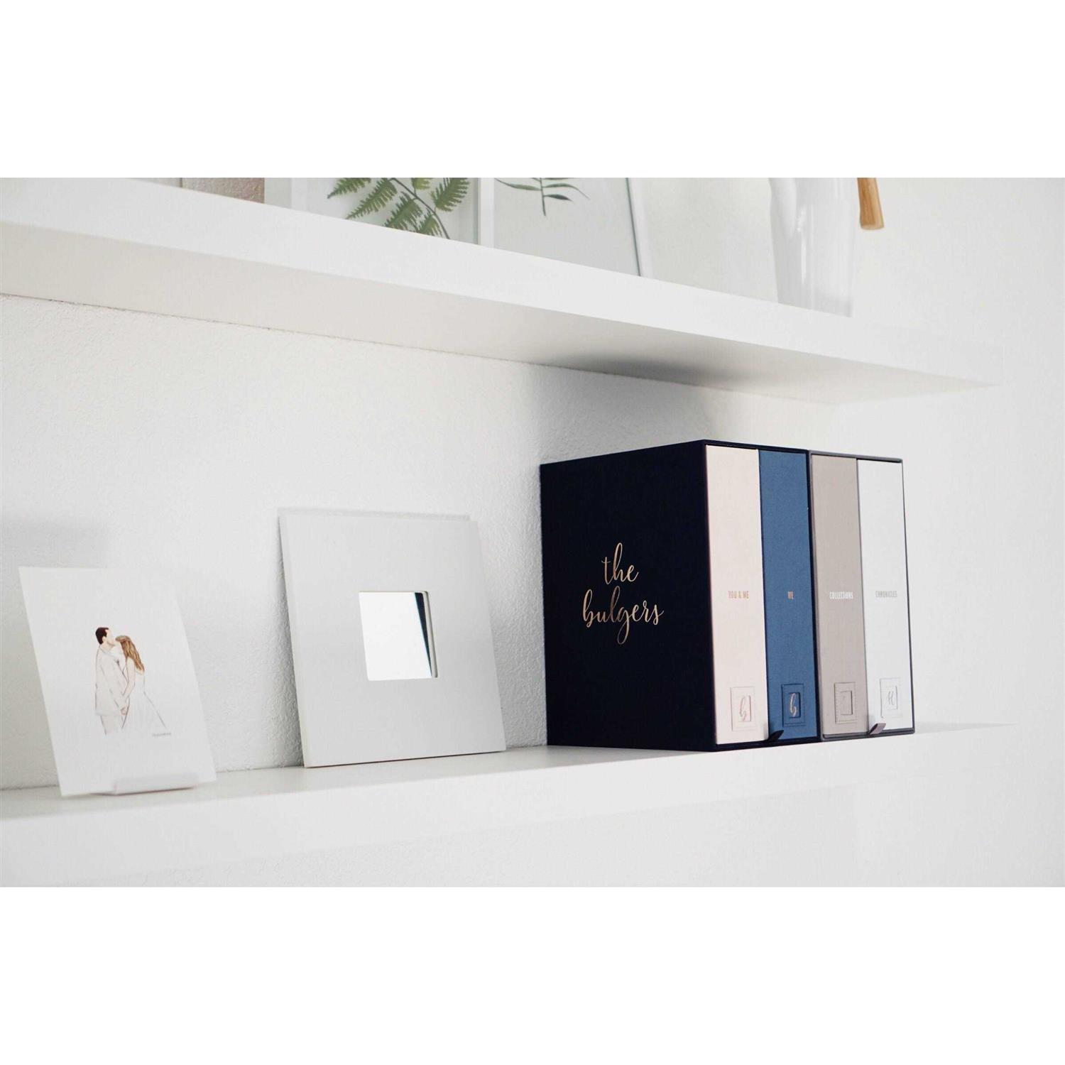 Make the memories of your wedding day last forever with Savor Wedding Edition Keepsake Box. This gorgeous, super simple system helps you organize, enjoy, and store your most important keepsakes from the first date through engagement to your first anniversary. Acid-free drawers hold treasured mementos, from your boutonniere to a garter, while vertical files hold key documents, including invitations, guest books, table decorations, and more. Our illustrated labels guide you in what to save and where to put it. Stitched frames allow for personalization with included letters or photos. The lush, custom-dyed fabric boxes of The Library are meant to be displayed in the finest living room. Measures 10.02″ x 7″ x 12.88″ in the sleeve; 5.81 lbs. net wt.