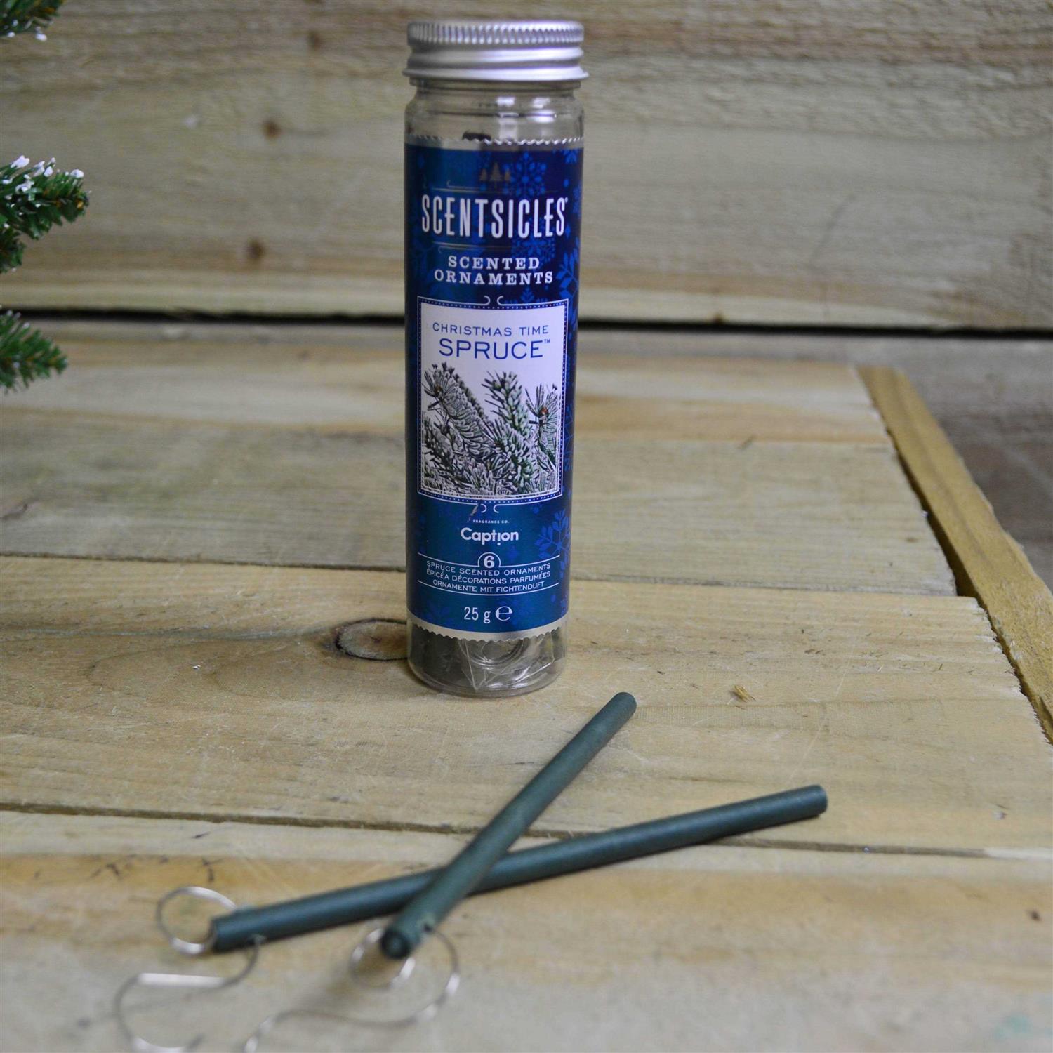 The holiday season is a special time of year and nothing makes it feel like Christmas more than the smell of a fresh-cut tree. Whether adding scent to you artificial tree or enhancing the scent of your real tree. Scentsicles Scented Ornaments can make any tree small like a Christmas tree. Notes of Balsam fir tree mingle with the aroma of juniper berries, fresh pine, and warm cedar wood. Trickling through the air is the scent of a sweet, perfectly-ripened clementine, telling you that your favorite winter citrus has made its annual yuletide appearance. ScentSicles O Christmas Tree Scented Ornaments can make any tree smell like a Christmas tree. Whether adding scent to your artificial tree or enhancing the scent of your real tree, ScentSicles can create that magical Christmas feeling with the smell of Balsam Fir, juniper berries, cedar wood, and clementine for the holiday season. Designed to naturally blend in, simply hang or hide in trees, wreaths, garland, and holiday décor. Each bottle comes with six scented ornaments and swirl hooks.