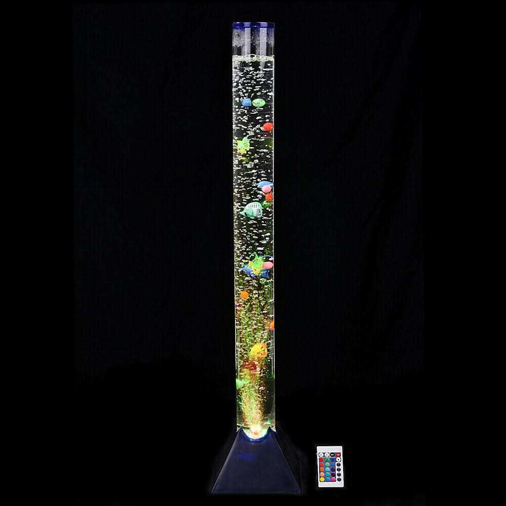 When Life Get You Down, Just Keep Swimming! This delightful novelty lamp will keep you dreaming about life under the sea. But with this jumbo-sized tank, theres no feeding or cleaning – just sit back and enjoy as the constant stream of hundreds of bubbles keeps up to a dozen sea creatures exploring the depths! Soothing and relaxing, you can switch the waters color with the included remote. You fill the 28 plastic tube with water. Total height: 35 inch. AC powered. For ages 12+.