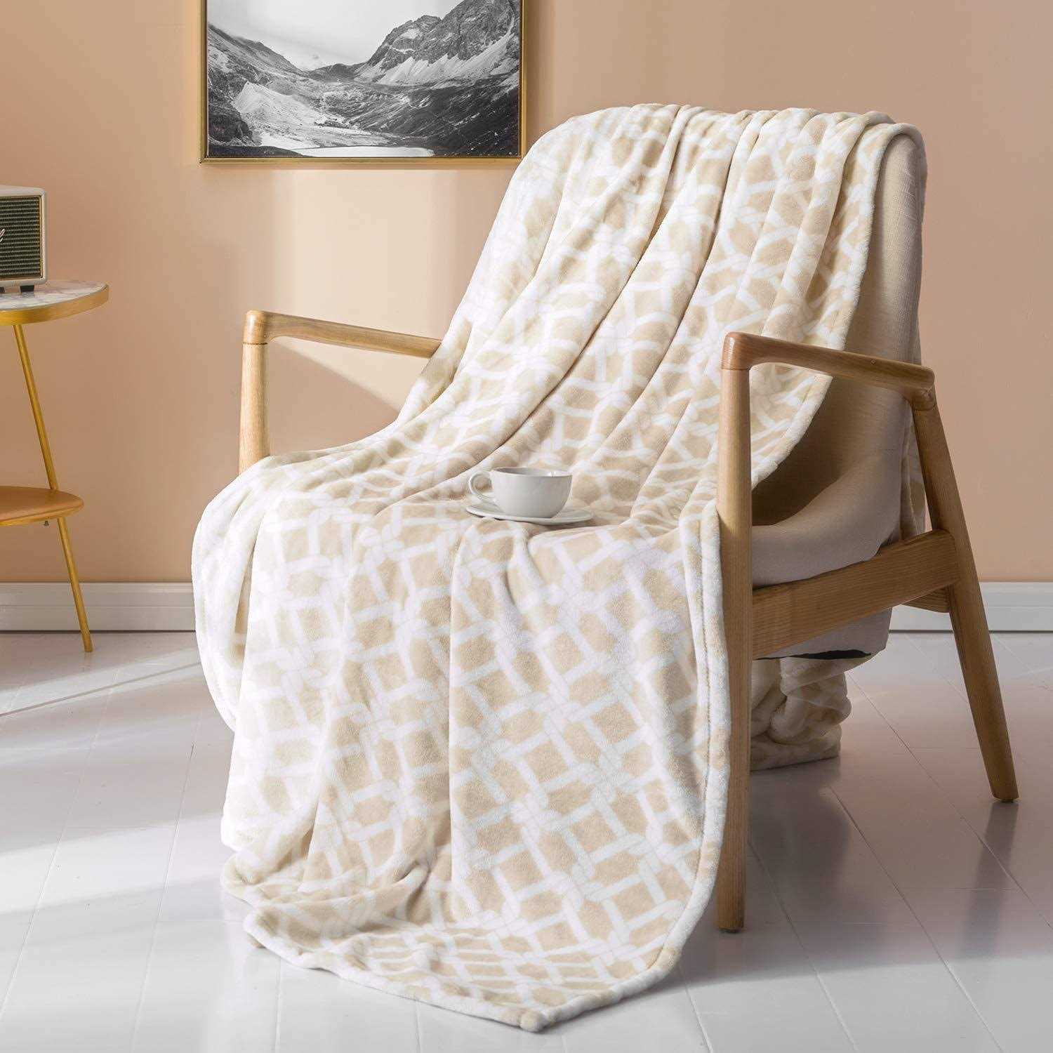 Sedona House B089DCBKT7 60 x 80 in. Printed Flannel Twin Blanket Ivory