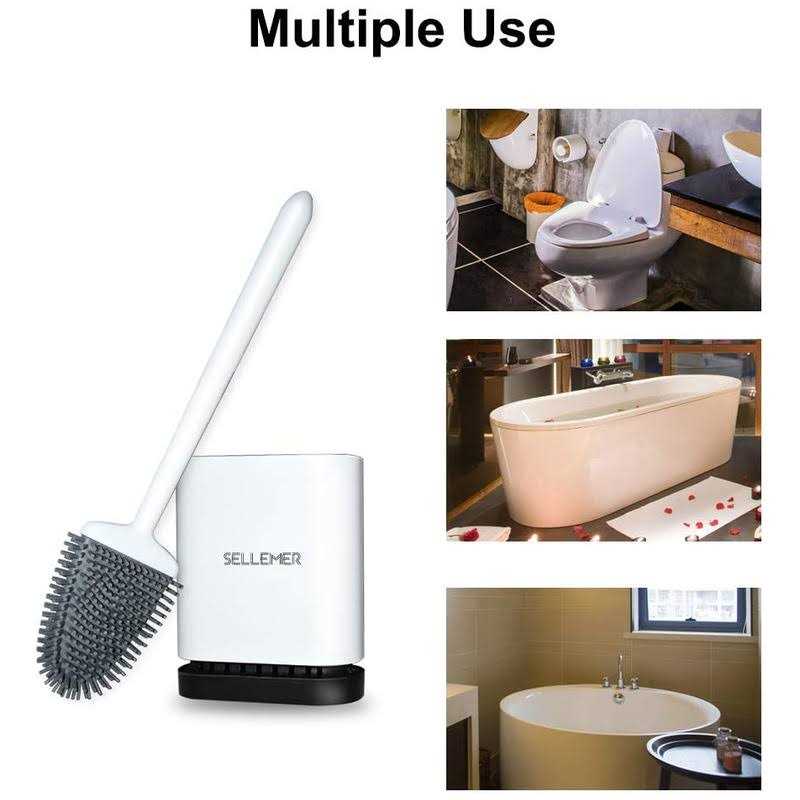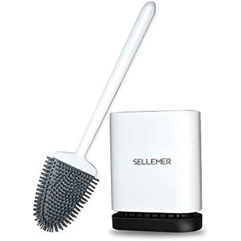 Sellemer Toilet Brush and Holder Set for Bathroom, Flexible Toilet Bowl Brush Head with Silicone Bristles, Compact Size for Storage and Organization