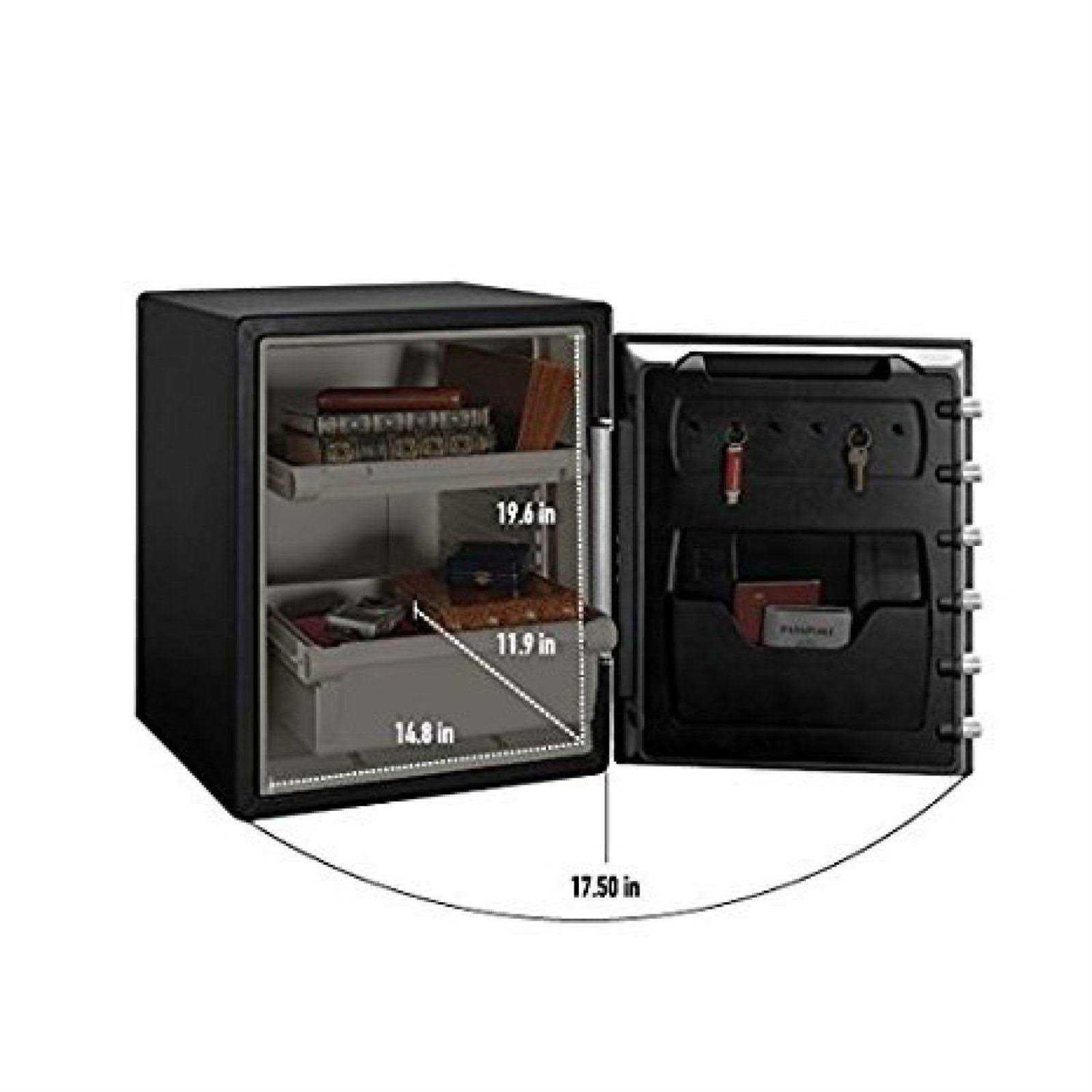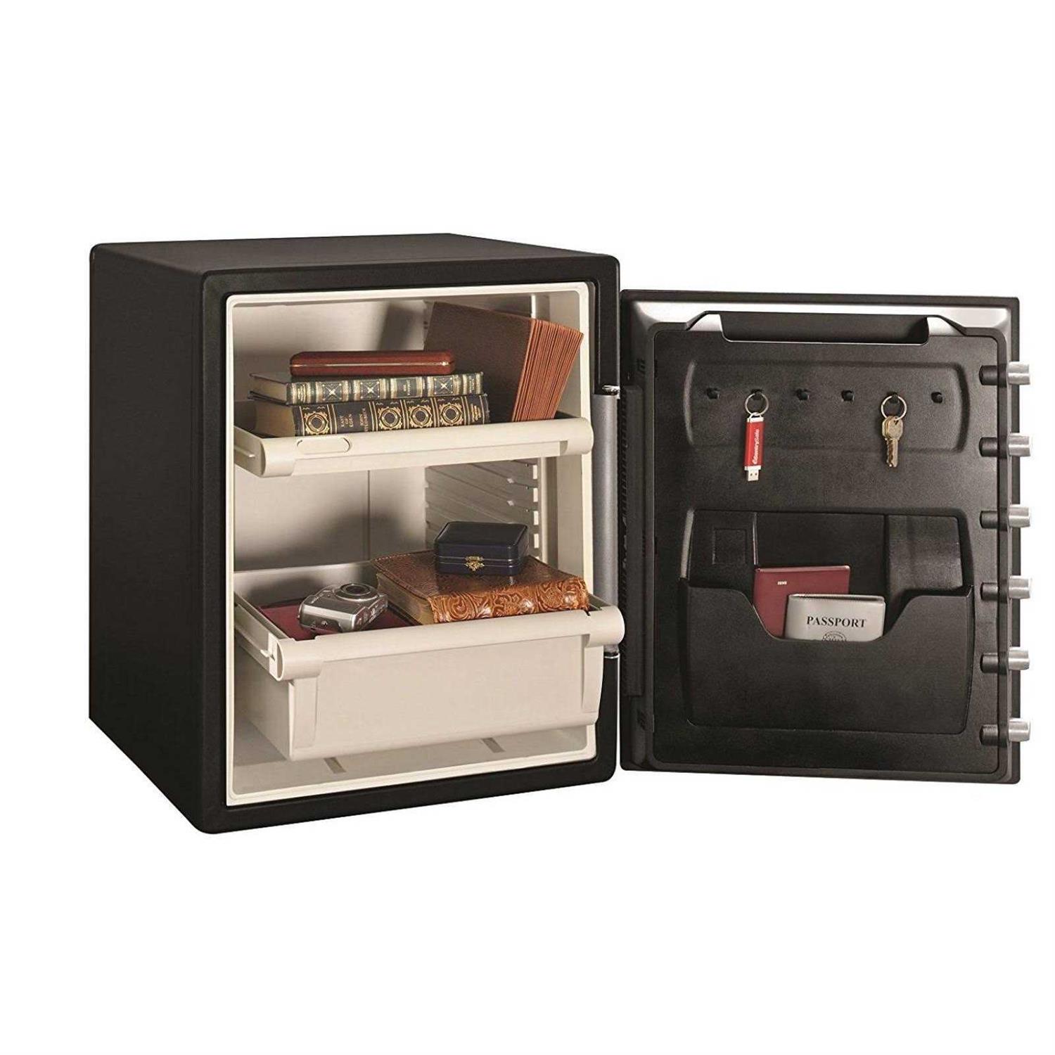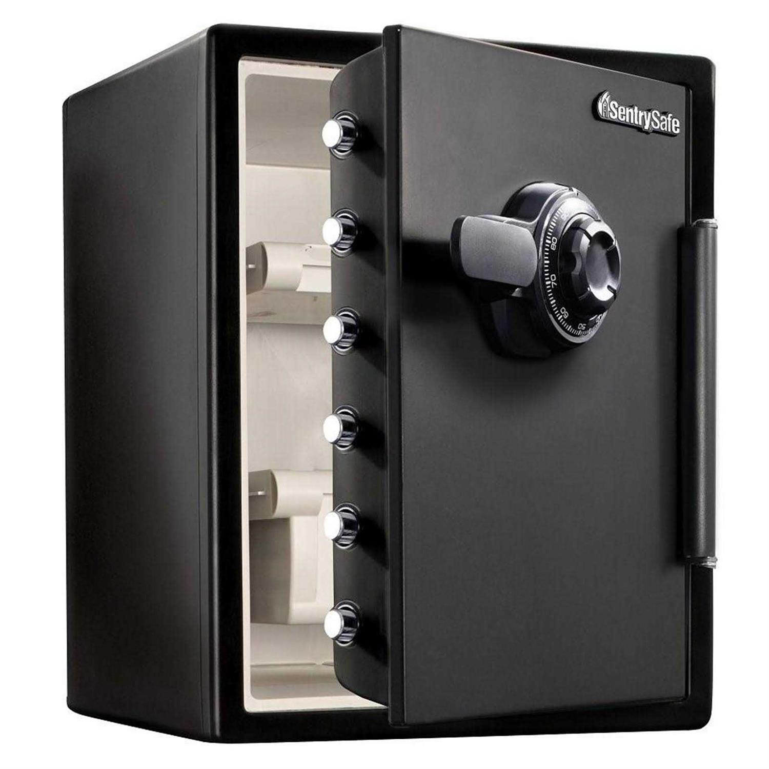 Safes Cash Handling Sentry Safe SENSFW205CWB Fire-Safe with Combination Access, 2 cu ft, 18.6w x 19.3d x 23.8h, Black, Office Supplies > Cash Handling > Safes Cash Handling Designed with advanced fire protection, water-resistance and security in mind. Three- and four-number factory-set combination locks are among the most reliable forms of securing your valuables. Protect tablets, phones, external hard drives, memory cards, USB drives, CDs, DVDs and other electronic storage devices. Pry-resistant hinge bar reinforces the door of the safe for added protection against theft. Solid steel construction and large, 1” live-locking bolts for durable and reliable protection. Key rack, door tray and deep door pocket. Bolt-down kit included. Magnet proof.