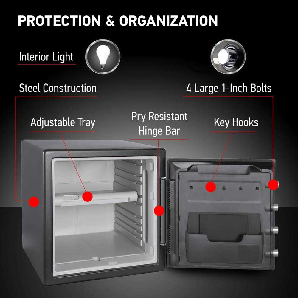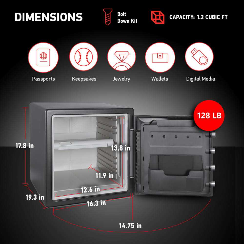 - Constructed with solid steel, this home safe features 4 large 1-inch bolts and a pry-resistant hinge bar to protect from forced entry.
