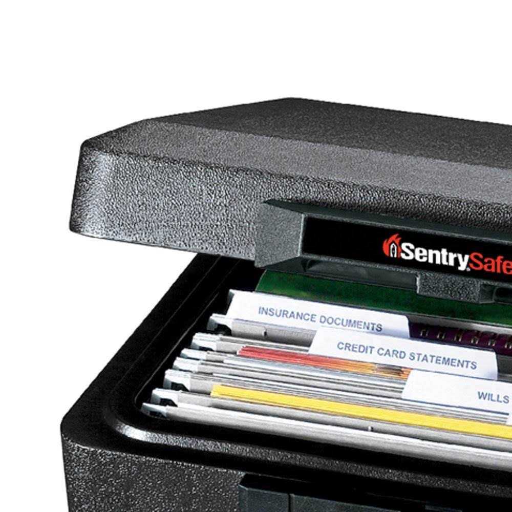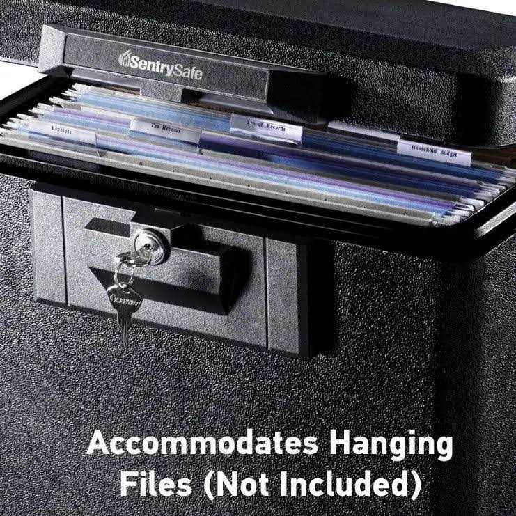 Protect your valuable documents and digital media from fire damage and theft while giving yourself some peace-of-mind while you’re away from your home or office with the SentrySafe 0.61 cubic foot fire protection safe. This durable document safe accommodates hanging files so you can keep documents like medical records, business records, and financial paperwork neat and organized. This safe box is also ideal for your electronics such as tablets, phones, external hard drives, memory cards, USB drives, CDs, DVDs, and more. Simply lock with either of the 2 included privacy lock keys for straightforward and convenient security. Interior Dimensions: 10.3-inch H x 12-inch W x 9.5-inch D, Exterior Dimensions: 13.1-inch H x 15.4-inch W x 14.7-inch D.
