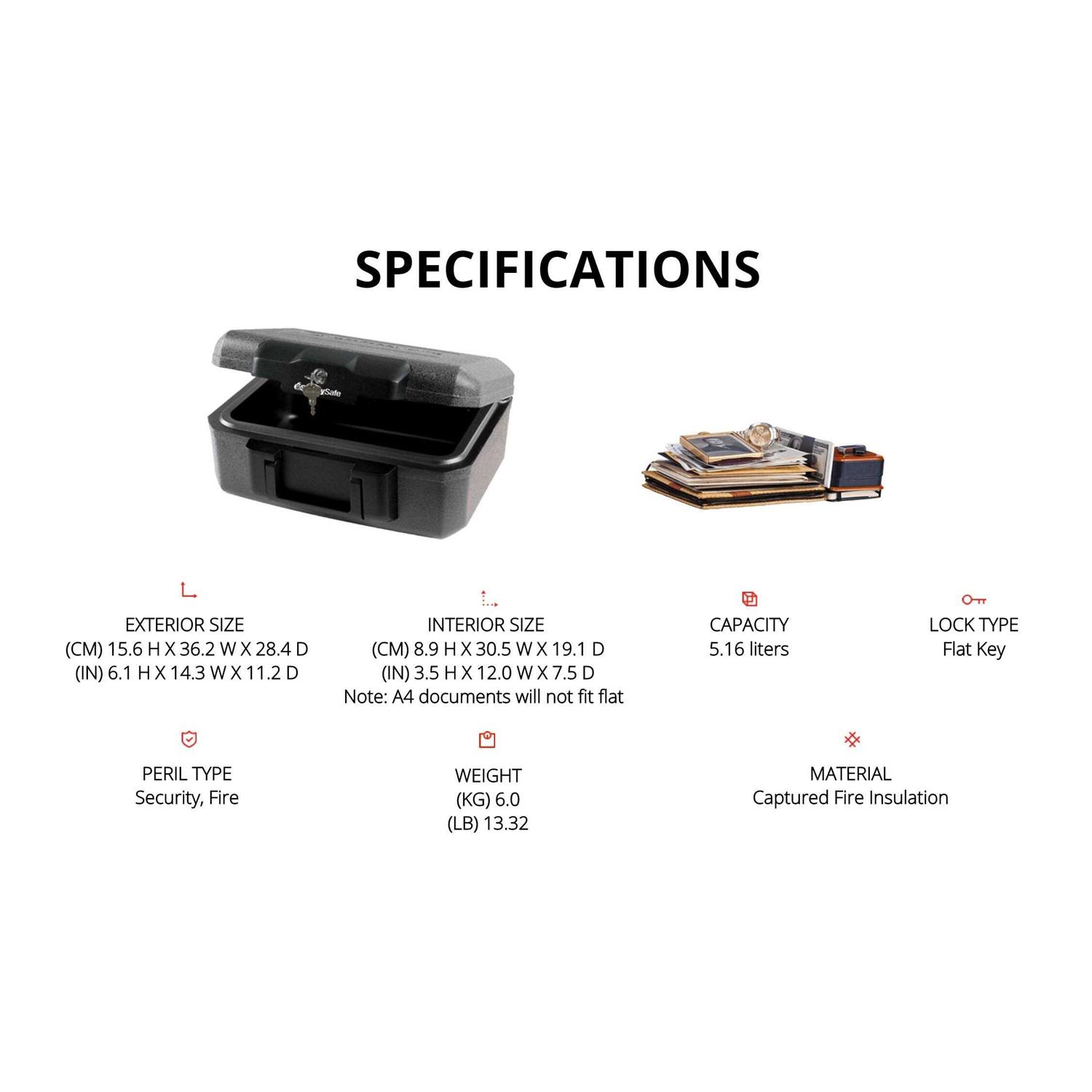 - Privacy key lock to keep unwanted viewers away from the contents in the safe as well as prevents the lid from opening in the event of a fire